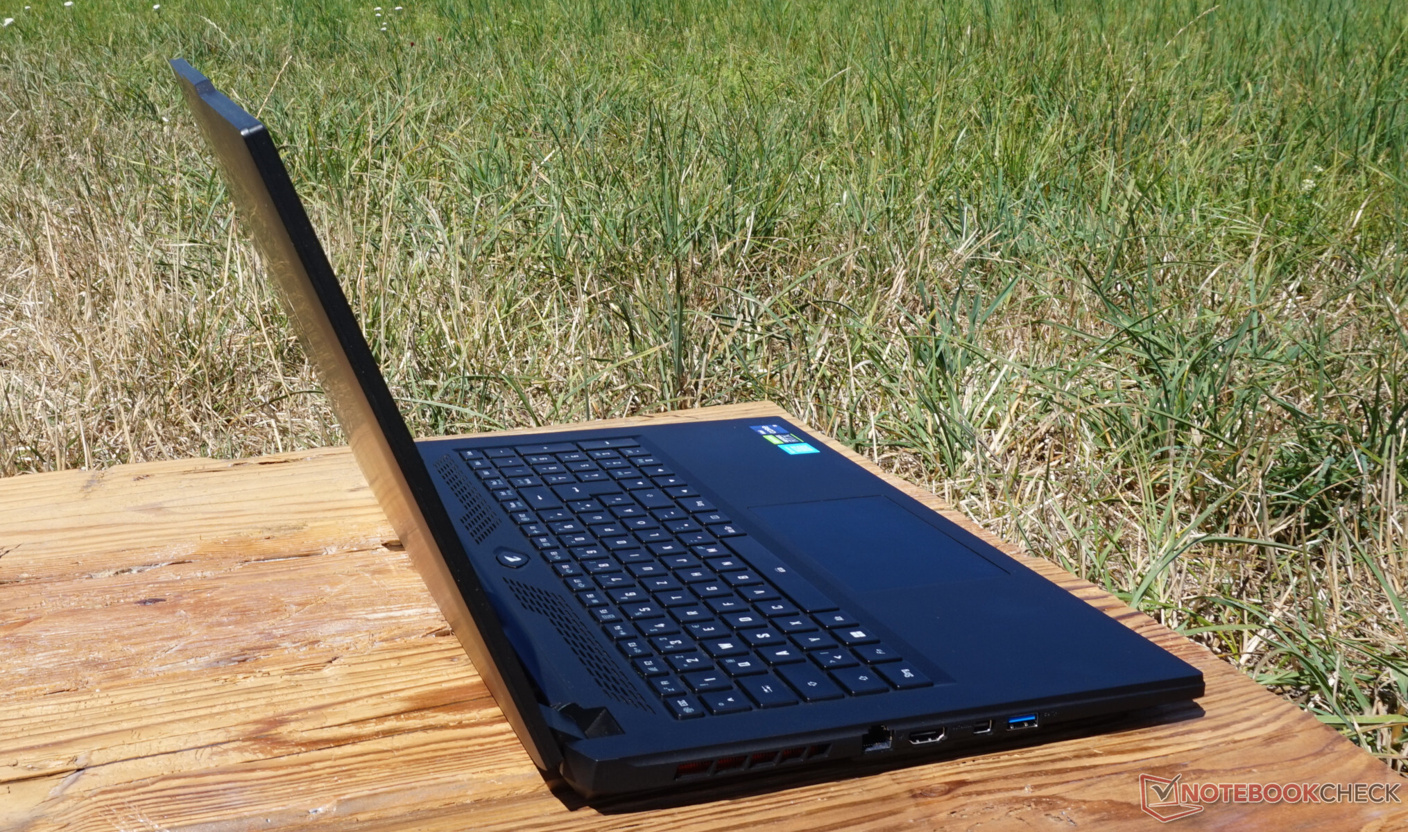 El equipo de conexión también podría haber resultado un poco más abundante. El portátil de 17 pulgadas definitivamente ofrecería suficiente espacio para esto. Además, las dos conexiones USB-A siguen usando el estándar USB 3.0 con sólo 5 Gbit/s. Por otro lado, Thunderbolt 4, LAN de 2.5 Gbit, así como HDMI y DP compensan un poco esto.
