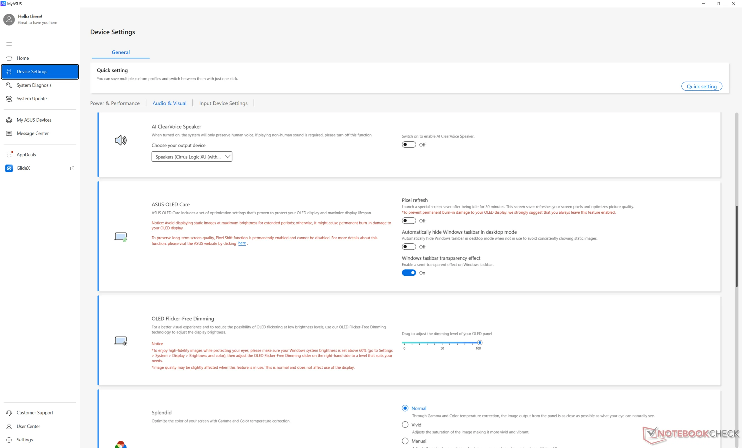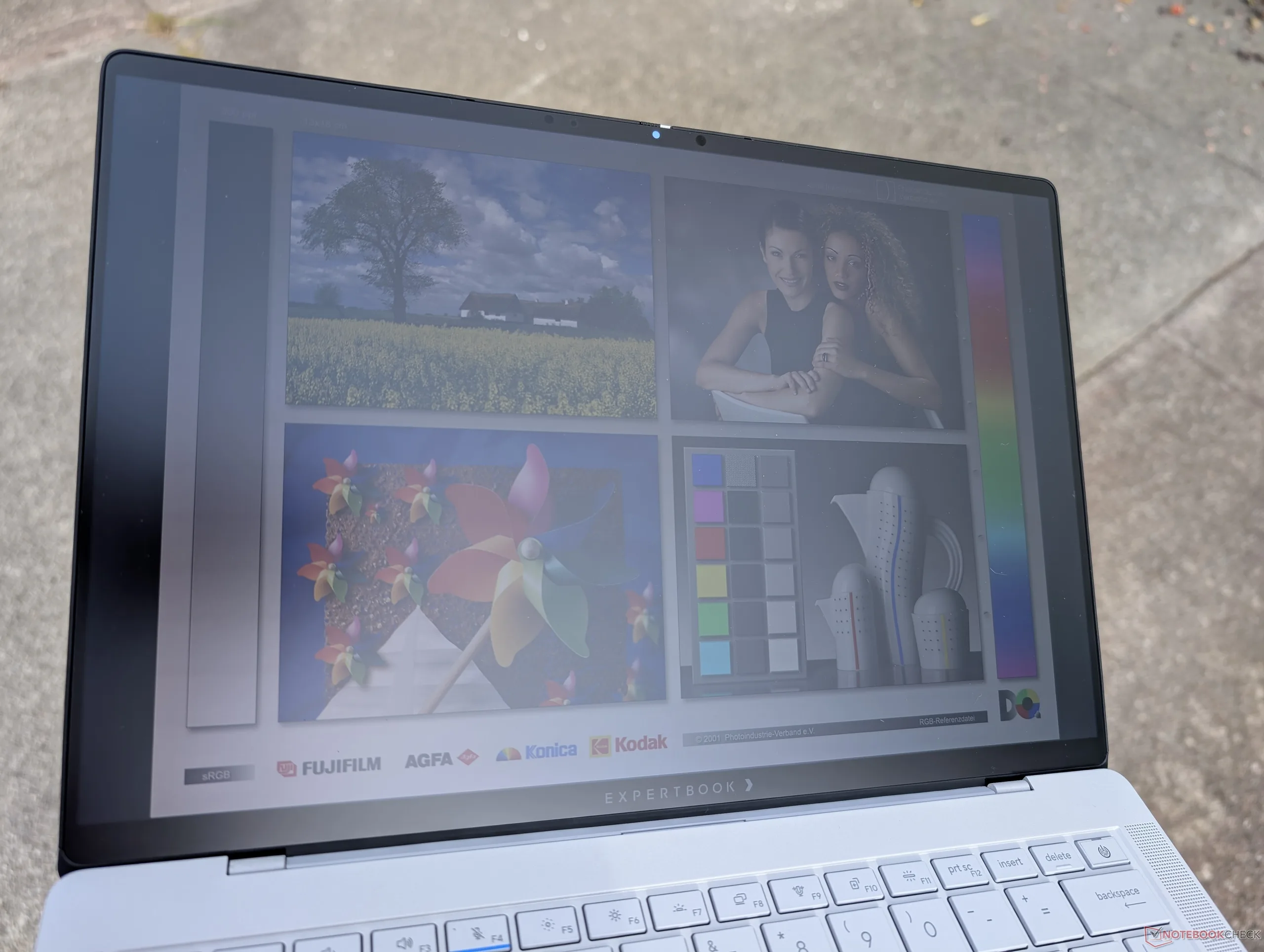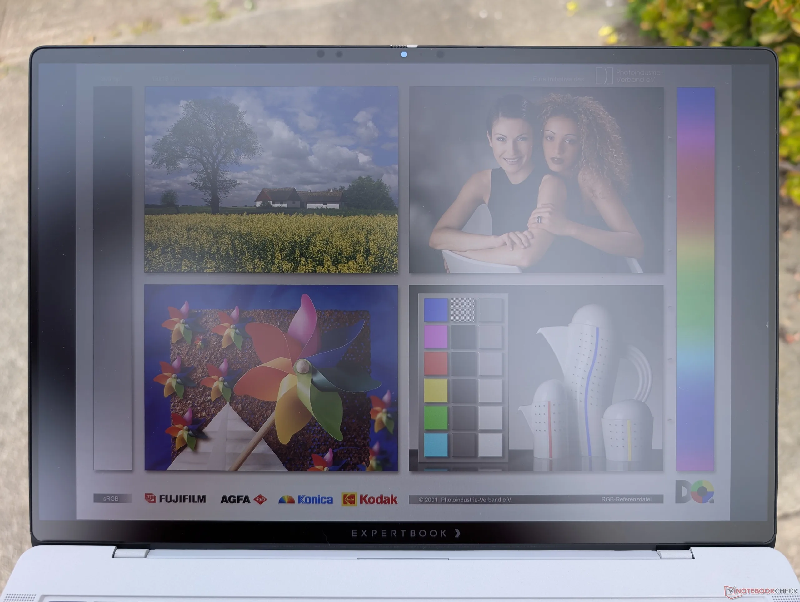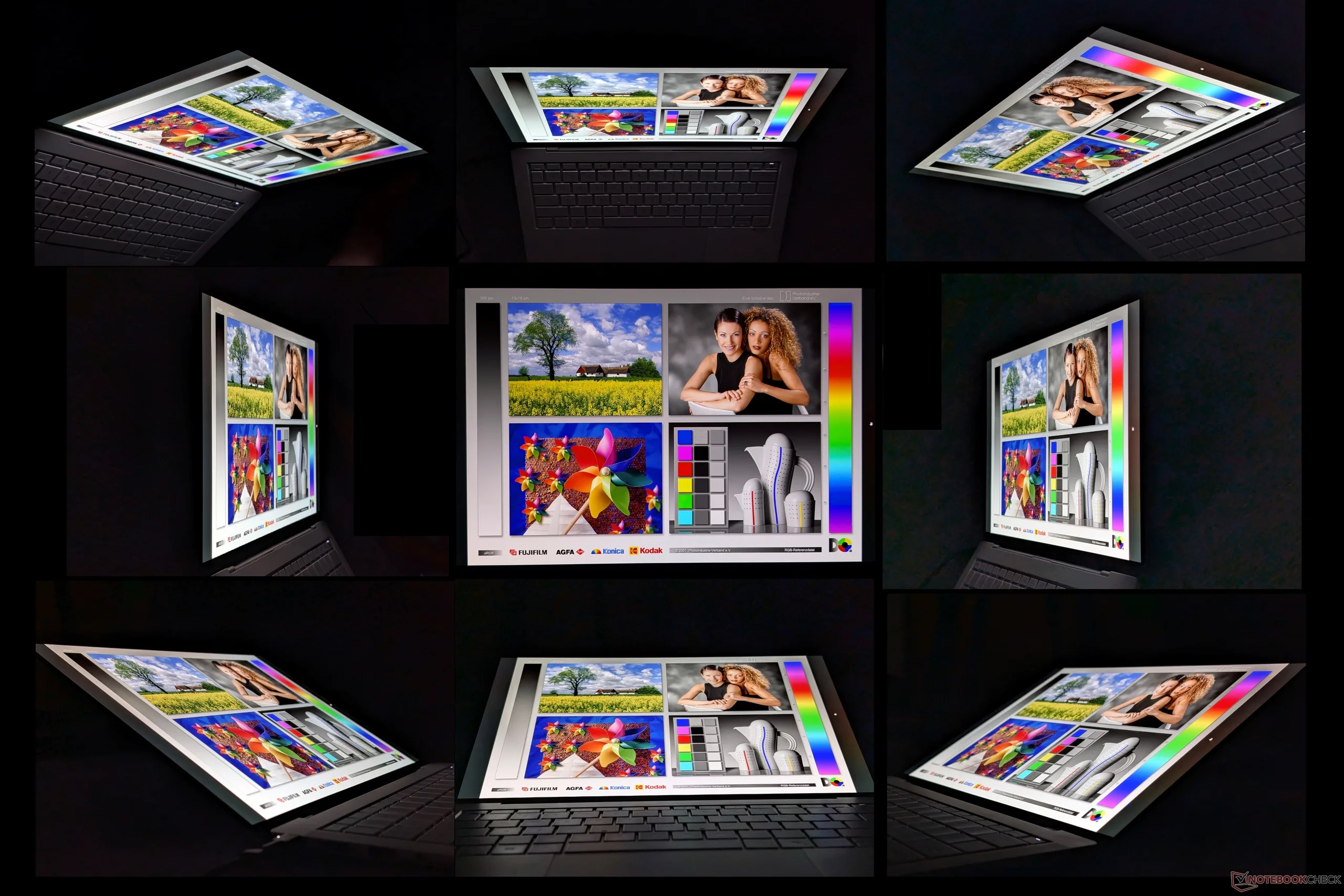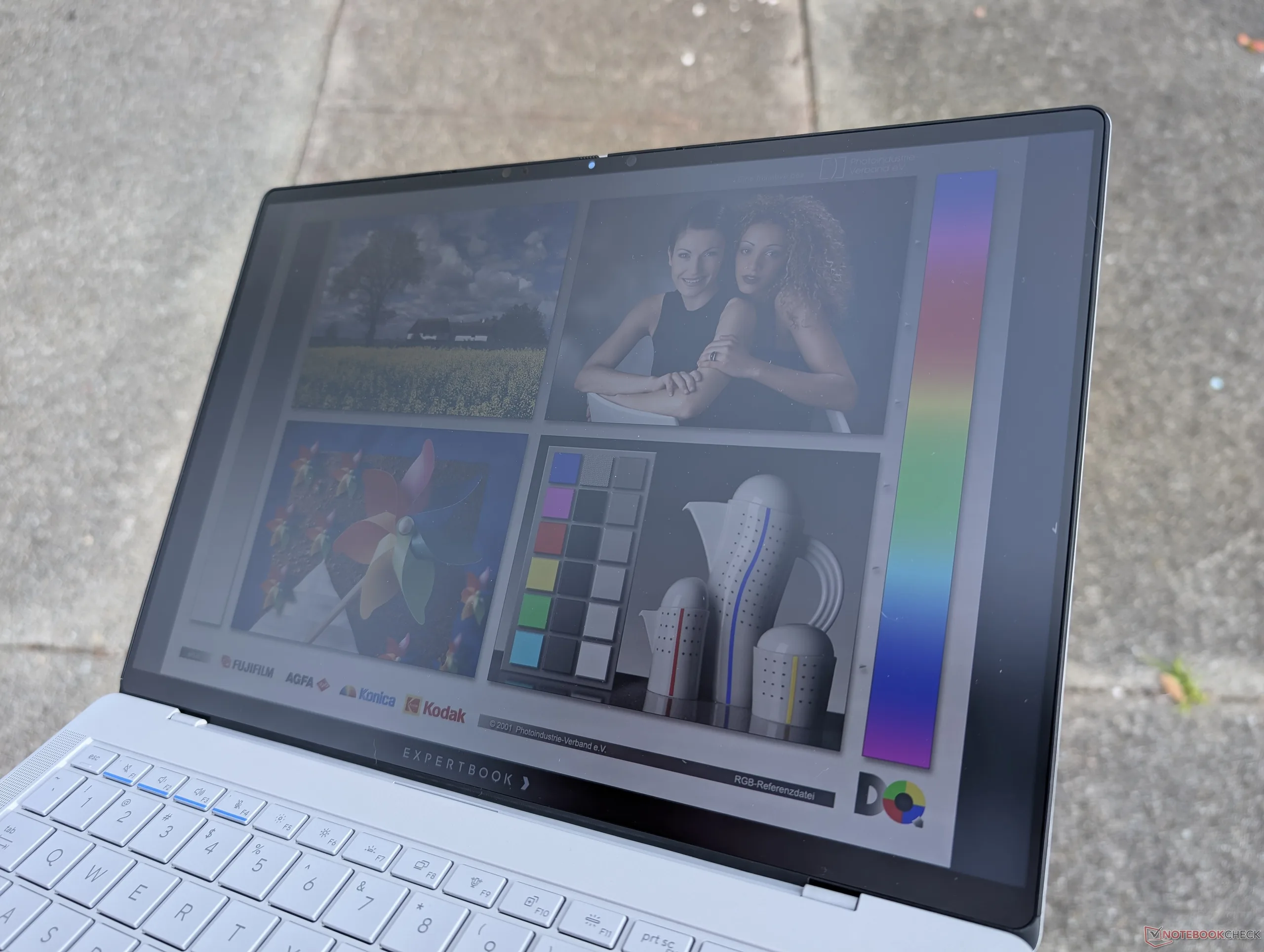 Una ventaja clave del OLED en tándem son sus niveles de brillo mucho más altos en comparación con el OLED estándar. De hecho, somos capaces de medir un brillo máximo de 1403 nits en modo HDR mientras que las pantallas OLED de la mayoría de los otros portátiles alcanzan sólo la mitad o menos. Los mayores niveles de brillo acompañados de los profundos niveles de negro por los que es conocido el OLED conducen a un contenido HDR aún más vibrante en el ExpertBook Ultra. Por lo demás, el brillo máximo está limitado a 600 nits cuando está en el modo SDR por defecto.