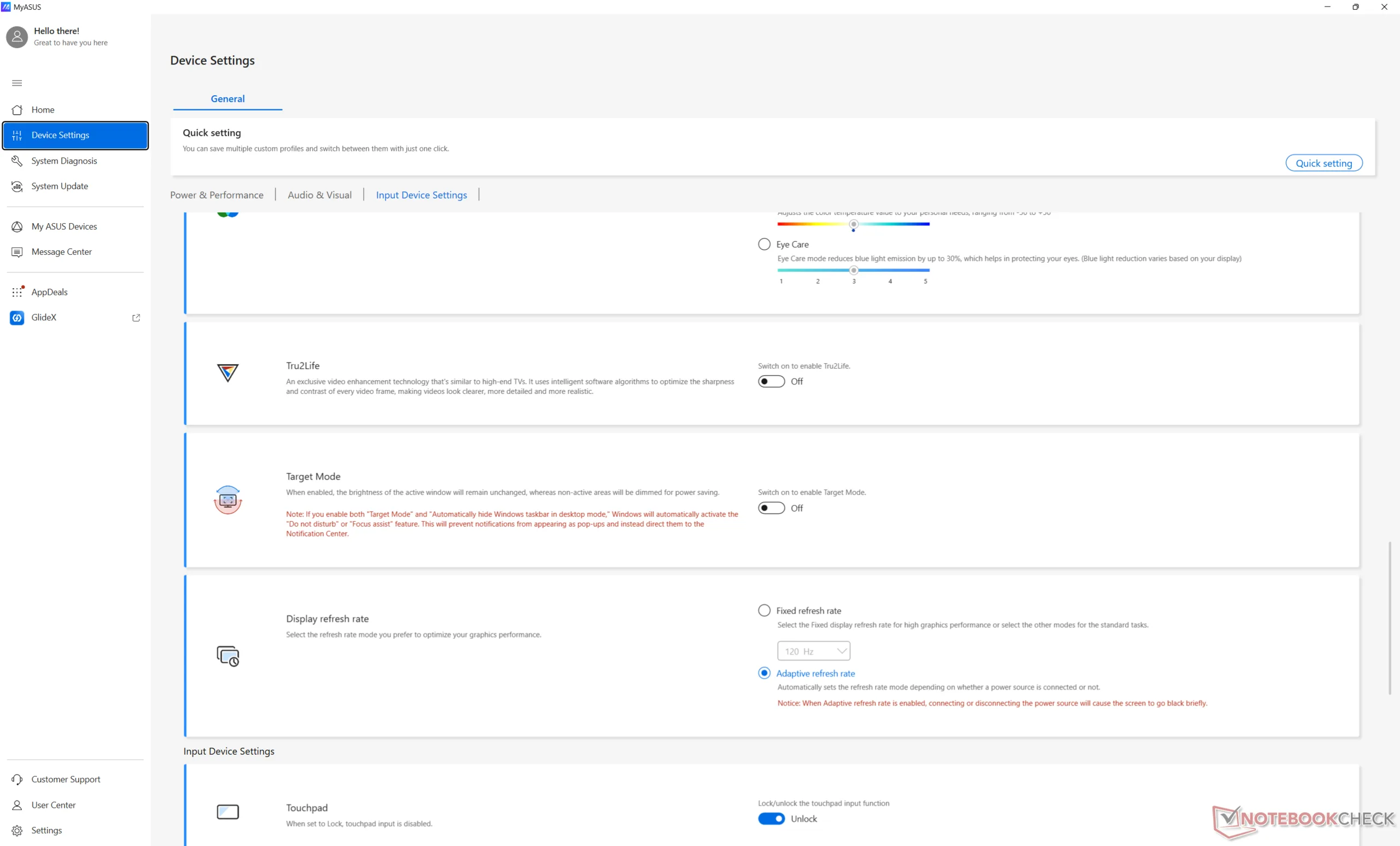 La rigidez de la bisagra es demasiado débil, ya que el simple hecho de levantar el sistema hace que la pantalla caiga hacia atrás. Asus afirma que este problema se solucionará cuando el modelo esté disponible para los consumidores.