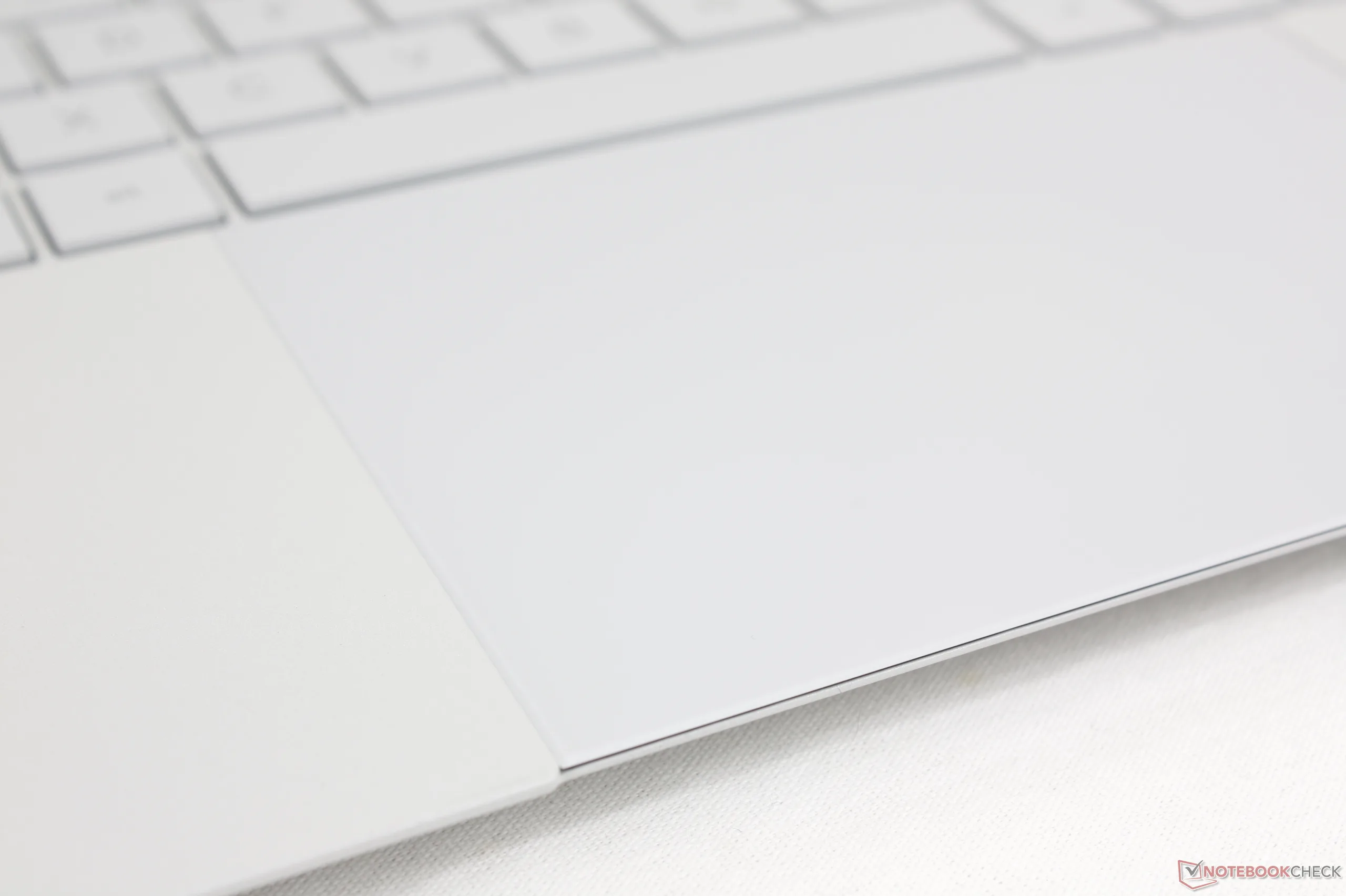 Aunque el clickpad es decentemente grande con 12,8 x 8,8 cm, la respuesta háptica al hacer clic es muy débil para una sensación insatisfactoria. Además, el borde frontal del clickpad está completamente enrasado con el borde frontal del chasis, a diferencia de lo que ocurre en la mayoría de los demás portátiles, lo que significa que los clics o movimientos accidentales son más comunes en nuestra experiencia.