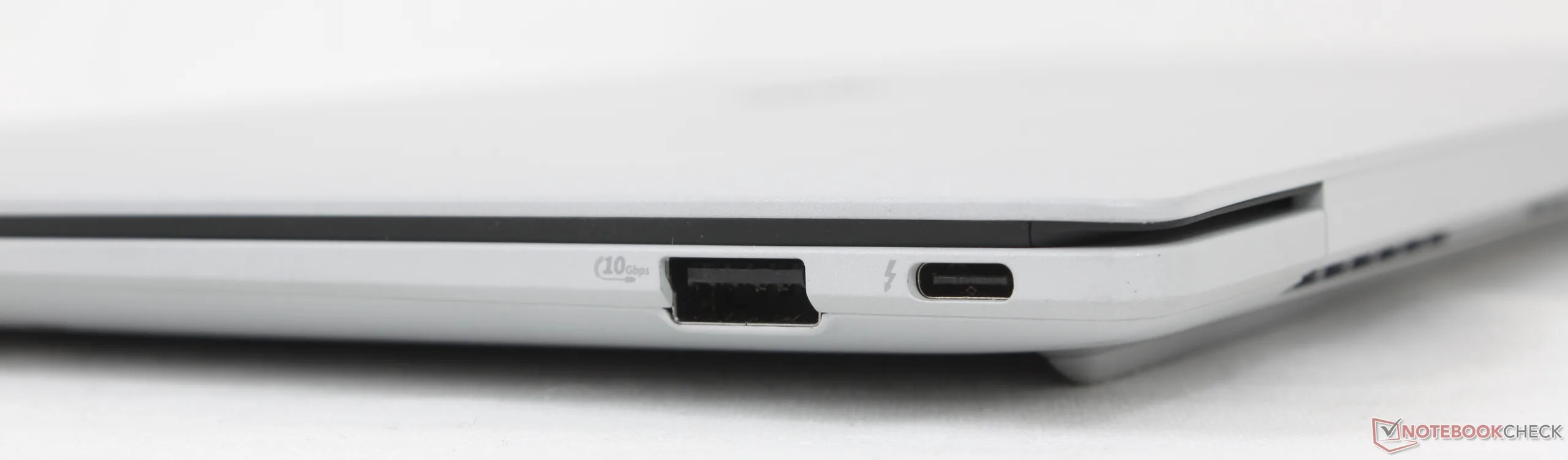 Las opciones de puerto son comparables a las del ThinkPad T14s Gen 6 aunque sin opciones de tarjeta inteligente. En el Asus, sin embargo, apreciamos que los dos puertos USB-C estén divididos entre los bordes derecho e izquierdo del sistema para facilitar la carga. En comparación, los mismos dos puertos USB-C en el mencionado ThinkPad están sólo a lo largo del borde izquierdo.
