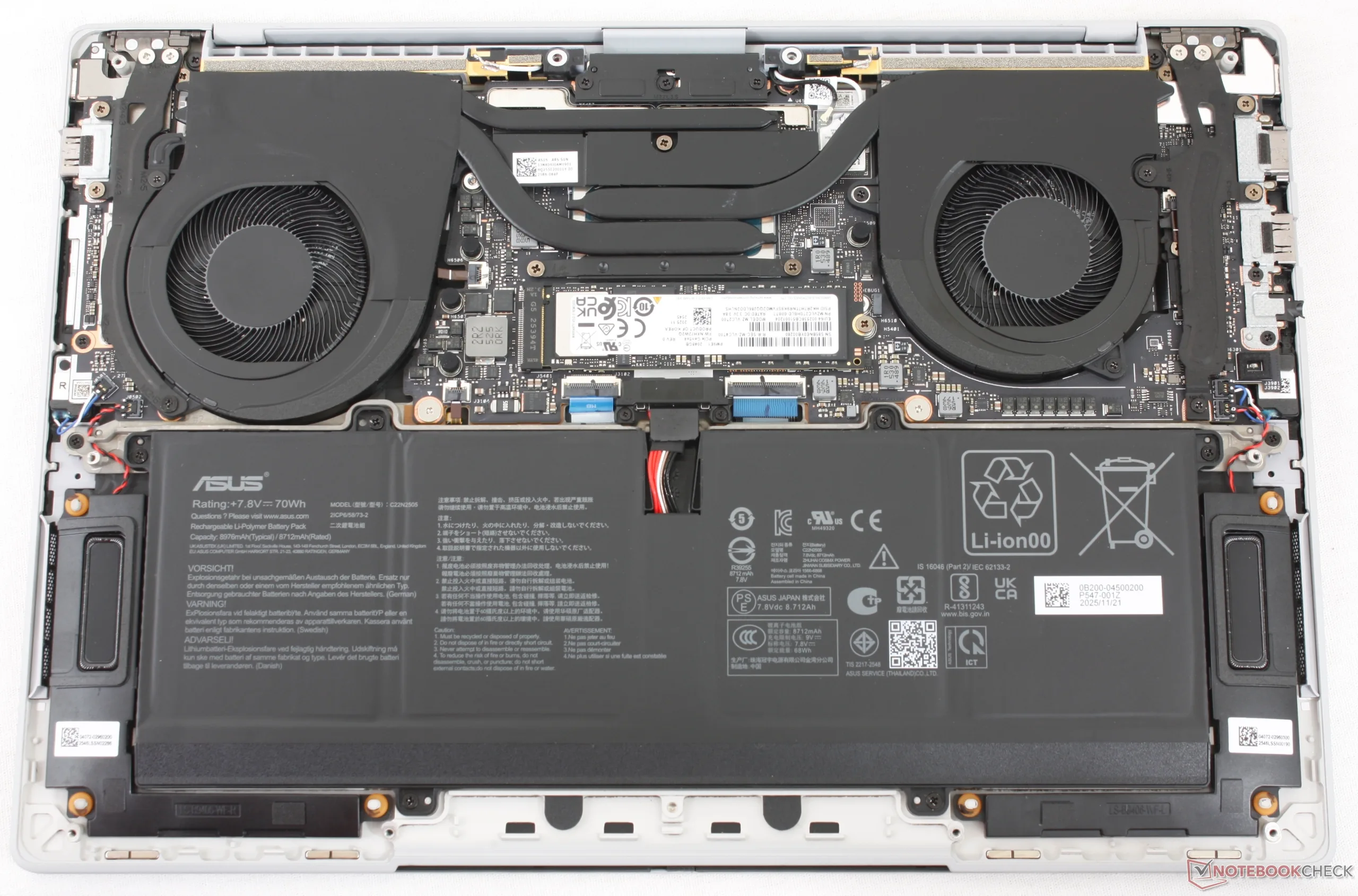 Mientras que la capacidad de 70 Wh es ordinaria para la clase de tamaño de 14 pulgadas, la duración de la batería es cualquier cosa menos eso. El Asus puede durar un poco más de 16 horas de navegación WLAN en el mundo real antes del apagado automático para ser varias horas más que muchos otros subportátiles incluyendo el propio de la compañía con tecnología AMD ExpertBook PM3406.