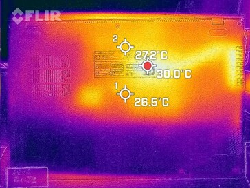 Las temperaturas de la carcasa se mantienen dentro de la zona verde en el uso diario (oficina, Internet). El F415EA apenas se calienta bajo carga (test de estrés). Las temperaturas de la CPU (aprox. 60 °C) no dan motivo de preocupación.
