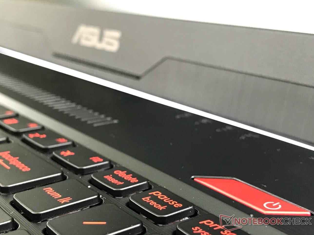 El Asus FX503VM es sin complejos de plástico. Para ese fin, la carcasa tiene un acabado de metal cepillado falsamente que se ve llamativo y funciona bien para ocultar la construcción de plástico a distancia. Una cosa que no puede ocultar, sin embargo, son las huellas dactilares. Las manchas pueden estropear fácilmente el color negro mate, pero se pueden limpiar fácilmente con un paño. La tapa tiene dos pequeños biseles en ángulo de 45 ° que apuntan a las esquinas superiores izquierda y derecha que dan al dispositivo un toque sutil y recuerdan mucho al ROG Zephyrus. El interior continúa este lenguaje de diseño con cambios en la dirección del acabado cepillado y una cubierta de teclado hundida. El efecto general se ve bien sin ser demasiado exagerado; el FX503VM es sutil, pero atractivo.