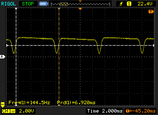 El parpadeo del OLED muestra una curva de amplitud desigual a bajo brillo del panel y fluctúa entre 193.8 y 568.2 Hz al mínimo brillo de la pantalla. Esta fluctuación apenas es perceptible por encima del 22% del brillo disponible (574.7 - 606.1 Hz), y en cuanto se supera la marca del 68%, el panel usa unos 144 Hz fijos. Por tanto, los usuarios sensibles deben esperar molestias al leer en la oscuridad. Sin embargo, dado que el brillo de la pantalla está siempre un poco más alto cuando se juega, esto puede hacerse sin problemas.