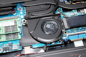 Para abrir el portátil, tiene que quitar todos los tornillos del fondo de la carcasa. A continuación, puede levantar la placa de la carcasa con una herramienta de palanca. Tras retirar la placa de la carcasa, tendrá acceso a los bancos de almacenamiento (ocupados), la unidad SSD (PCIe 4, M.2-2280), la segunda ranura SSD (PCIe 4, M.2-2280), el módulo WLAN, la batería de la BIOS, los ventiladores y la batería (atornillada, no pegada).