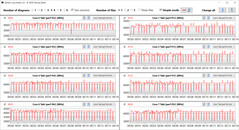Al principio de la prueba de estrés, con Prime95 y Furmark funcionando durante al menos una hora, la CPU (de 4 a 4,1 GHz) y la GPU (de 1.000 a 1.600 MHz) funcionan a altas velocidades de reloj. Al continuar, los valores bajan a entre 3 y 3,1 GHz (CPU) y entre 850 y 900 MHz (GPU). La prueba de estrés representa un escenario extremo y la utilizamos para evaluar si el sistema se mantiene estable a plena carga.