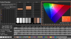 Al sacarlo de la caja, el panel viene con una desviación de color muy baja, de alrededor de 2,26 (objetivo: DeltaE < 3). Un calibrado reduce esta cifra a 1,03. Como ocurre con las pantallas de la mayoría de la competencia, este panel cubre (casi) por completo el espacio de color sRGB, pero no los espacios de color AdobeRGB y DCI P3.