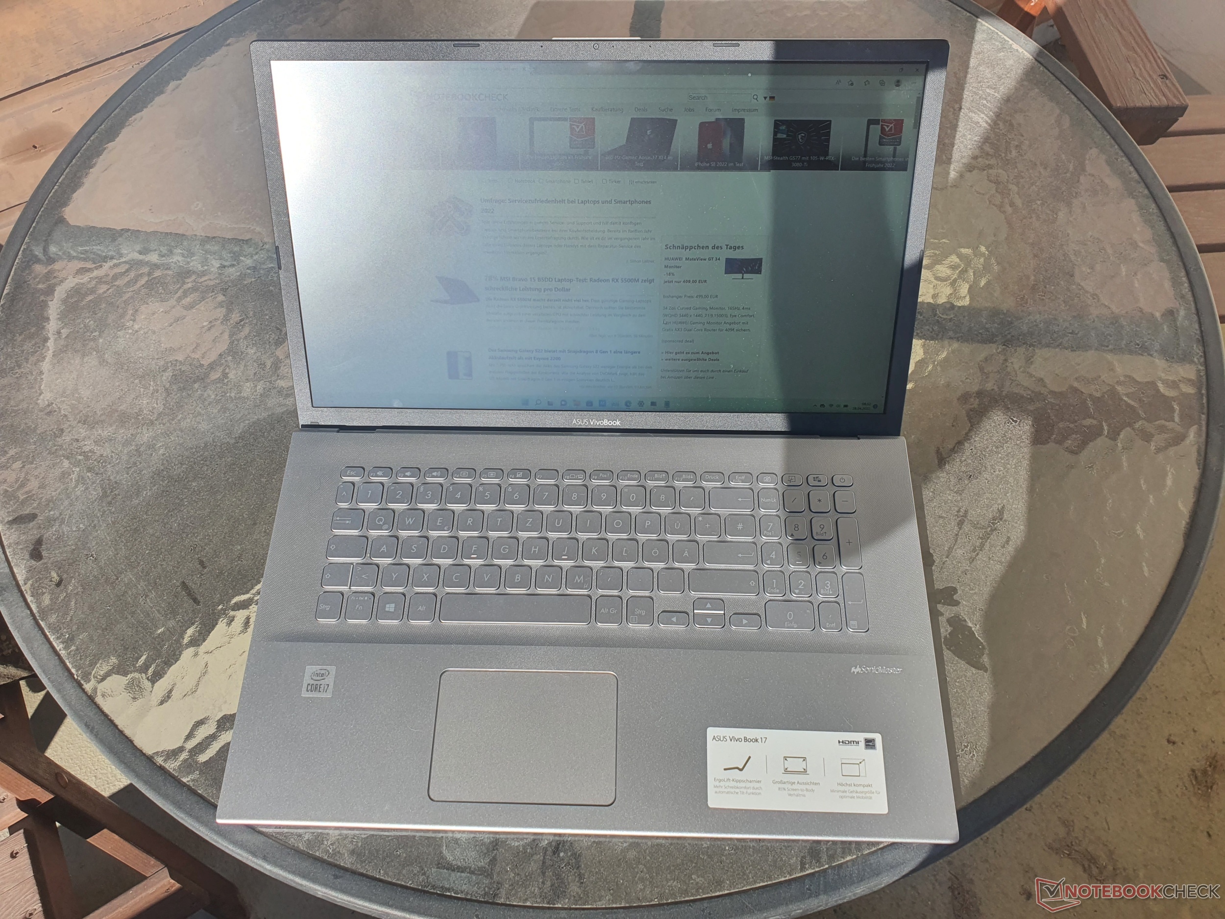 El Asus VivoBook 17 ofrece una pantalla IPS de 17,3 pulgadas con una resolución FHD (1920 x 1080 píxeles). La única alternativa disponible es un panel HD+ con tecnología TN anticuada