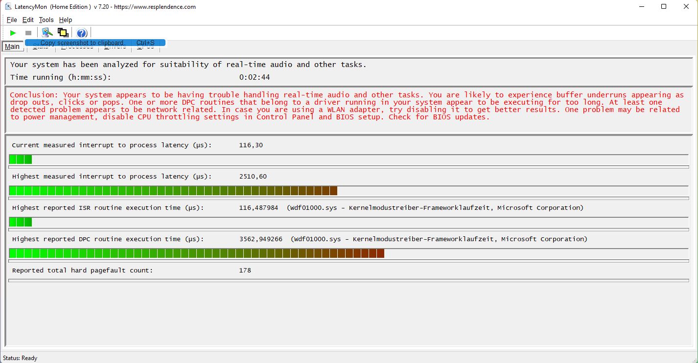 La pequeña batería de 32 Wh dura apenas 4 horas y media en la prueba WLAN a 150 nits de brillo en modo de energía balanceada. A plena carga, puede durar 1:40 horas debido a que la CPU está limitada a 10 vatios en funcionamiento de batería.