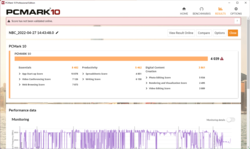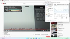 Durante la prueba de estrés combinada (Prime95 + FurMark), las velocidades de reloj de la CPU y la iGPU caen a sólo 800 MHz y unos 600 MHz respectivamente. En funcionamiento en batería, son sólo 700 y 400 MHz respectivamente, mientras que las temperaturas del núcleo son sólo de 66 °C (151 °F) durante ese tiempo y el ventilador permanece en silencio.