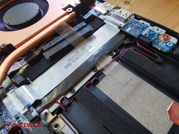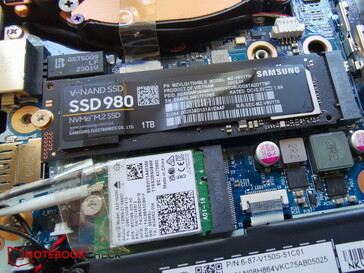 En lugar de una segunda ranura NVMe, hay una ranura SATA que puede alojar unidades de 2,5 pulgadas. Aparte del sello de garantía, es muy fácil realizar tareas de mantenimiento en este portátil.