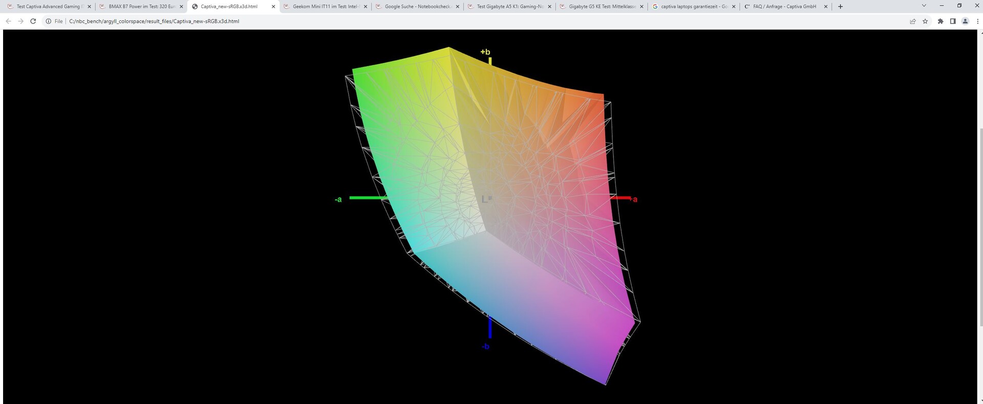 Captiva ha instalado un panel Full HD de 144 Hz de BOE en el portátil. Probamos el mismo panel en el Gigabyte A5 K1. Aquí, la pantalla es un poco más brillante (324 vs. 281 nits) pero a su vez, su valor de negro y contraste son ligeramente más pobres. Su iluminación del 90% es suficiente.