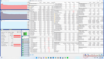 Bajo el estrés de Prime95, la CPU se dispara a 3,7 GHz durante unos segundos y a una temperatura del núcleo de 100 C. A continuación, la velocidad de reloj cae rápidamente y se estabiliza en 2,8 GHz para mantener una temperatura del núcleo más fría de 68 C. Si se ejecuta esta misma prueba en el Panasonic Toughbook FZ-55 MK2, la velocidad de reloj de la CPU es similar, pero la temperatura del núcleo es más cálida, de 81 C.