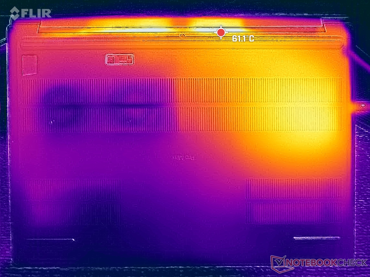(±) La temperatura máxima en la parte superior es de 44.8 °C / 113 F, frente a la media de 38.2 °C / 101 F, que oscila entre 22.2 y 69.8 °C para la clase Workstation.