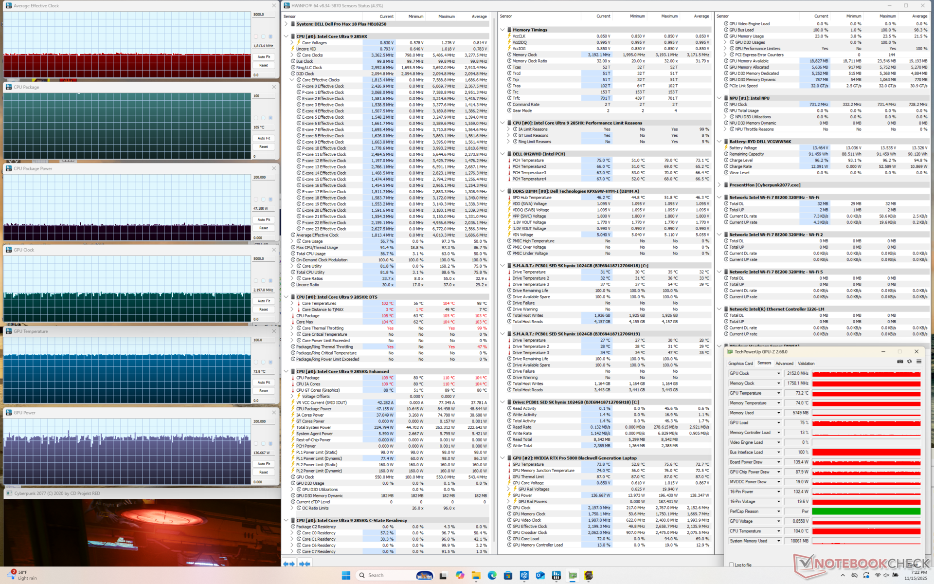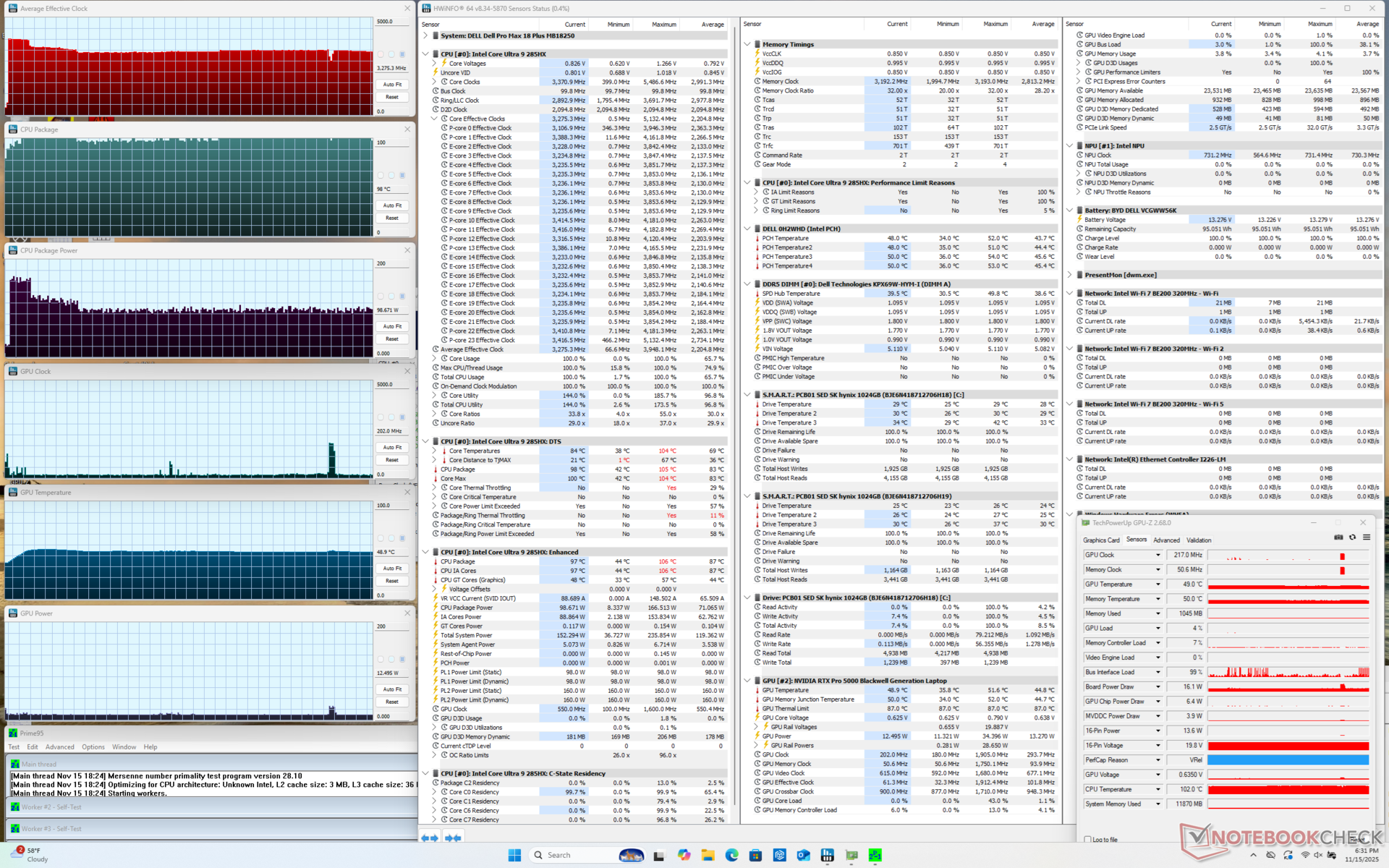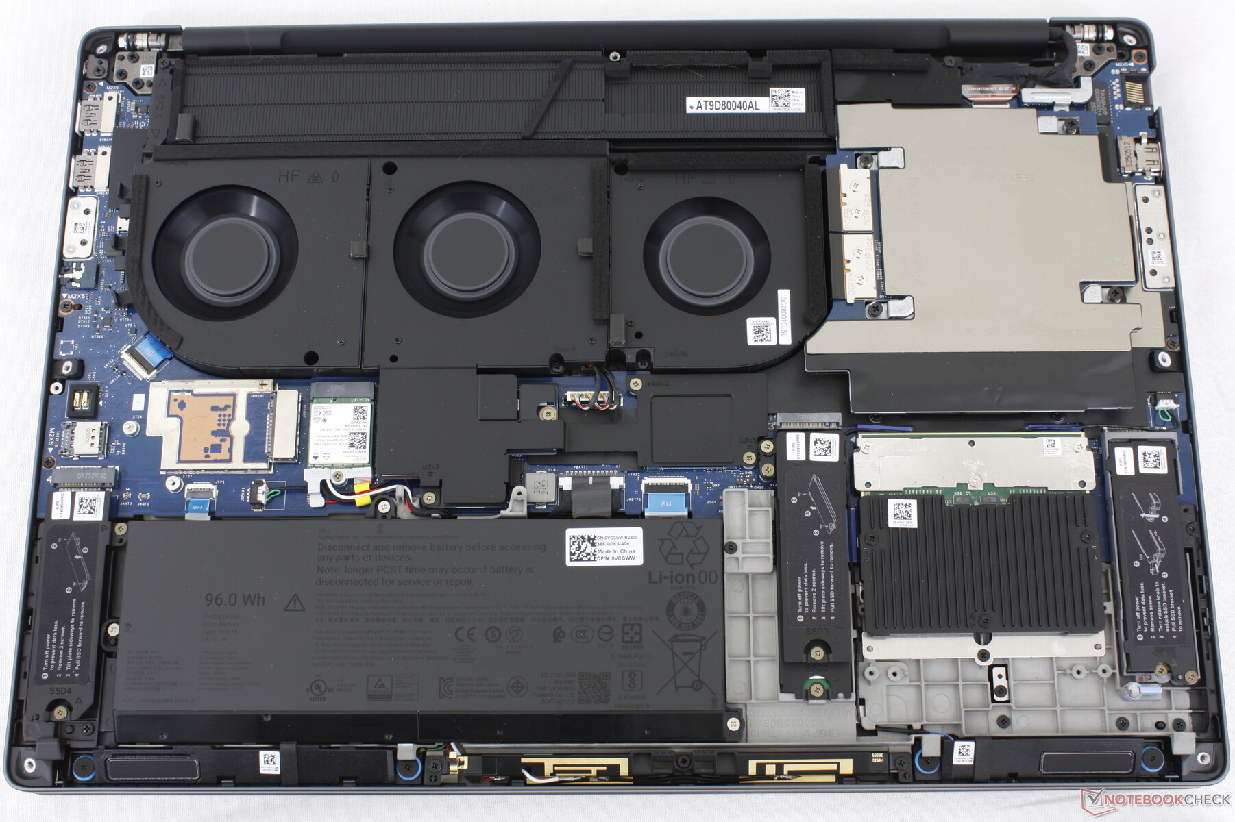 A pesar de lo sorprendentes que son la calidad de construcción y el hardware, el rendimiento aún podría ser un poco mejor. La CPU se calienta demasiado, en torno a los 100 C cuando está sometida a estrés, lo que repercute en el rendimiento Turbo Boost. Características como la solución de refrigeración, el teclado y las opciones de puerto siguen siendo esencialmente las mismas que en el pequeño Dell Pro Max 16 Plus a pesar de sus diferencias de tamaño. La falta de opciones de pantalla en particular puede decepcionar a los usuarios, especialmente porque el modelo de 16 pulgadas viene con al menos tres paneles para elegir, incluyendo OLED 4K.
