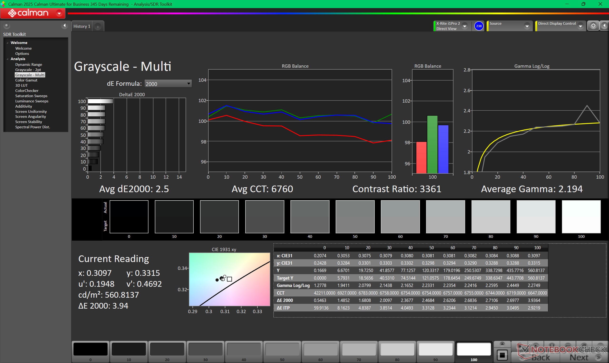 ΔE Greyscale Calman: 2.5 | ∀{0.09-98 Ø5}