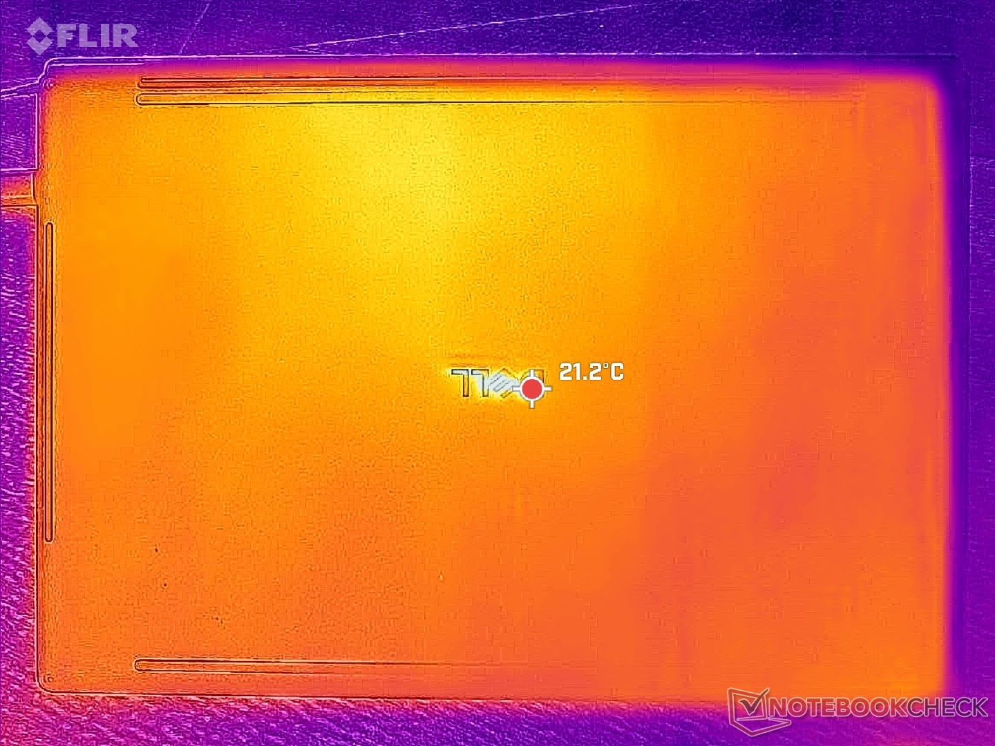(+) En reposo, la temperatura media de la parte superior es de 20.4 °C / 69# F, frente a la media del dispositivo de 31.3 °C / 88 F.
