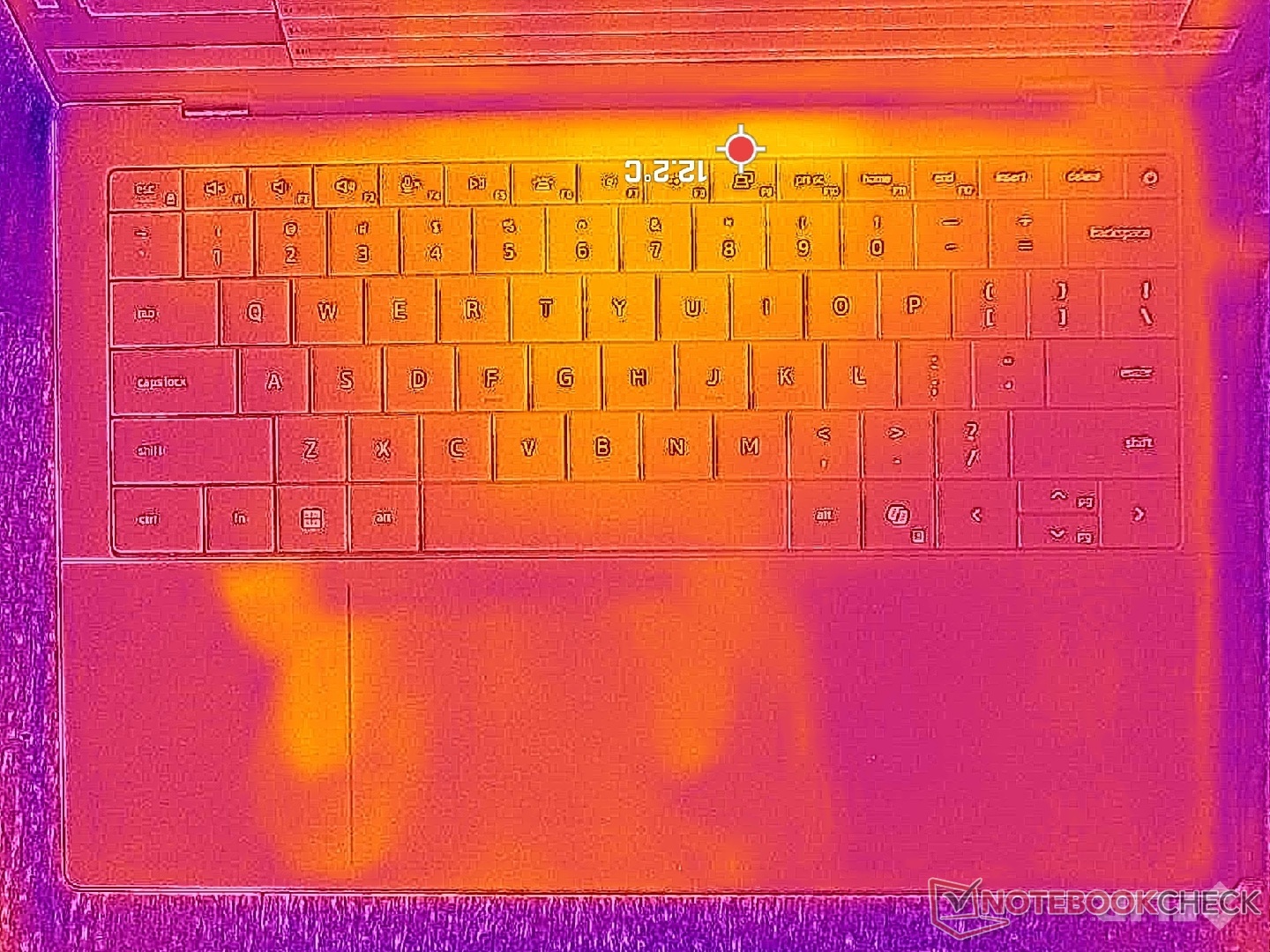Los puntos calientes de temperatura superficial se estabilizarían a niveles casi idénticos a los que observamos en el XPS 14 X7 a pesar del rendimiento significativamente más rápido disponible en este último.