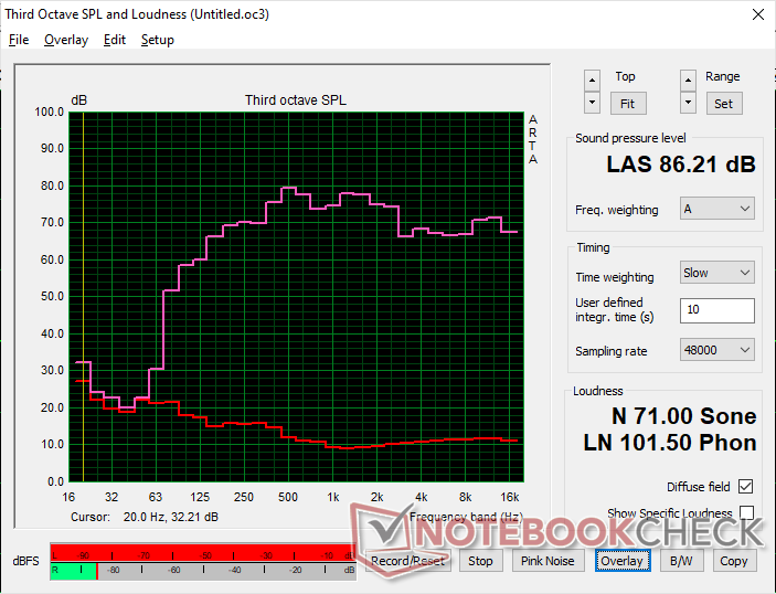 (+) | los altavoces pueden reproducir a un volumen relativamente alto (#84.7 dB)