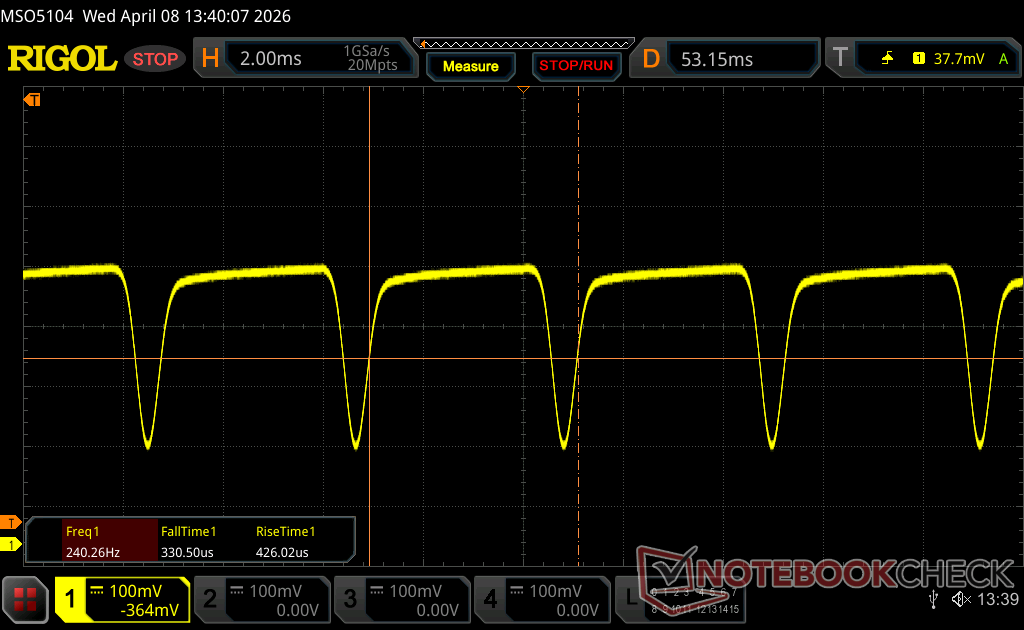 El brillo máximo del panel OLED alcanza los 400 nits en modo SDR o los 500 nits si está en modo HDR, según nuestras propias mediciones internas. Así pues, la configuración IPS, más barata, es en realidad ligeramente más brillante que la OLED al mostrar contenidos SDR. Por tanto, la visibilidad en exteriores no es necesariamente mejor con la opción OLED más brillante.