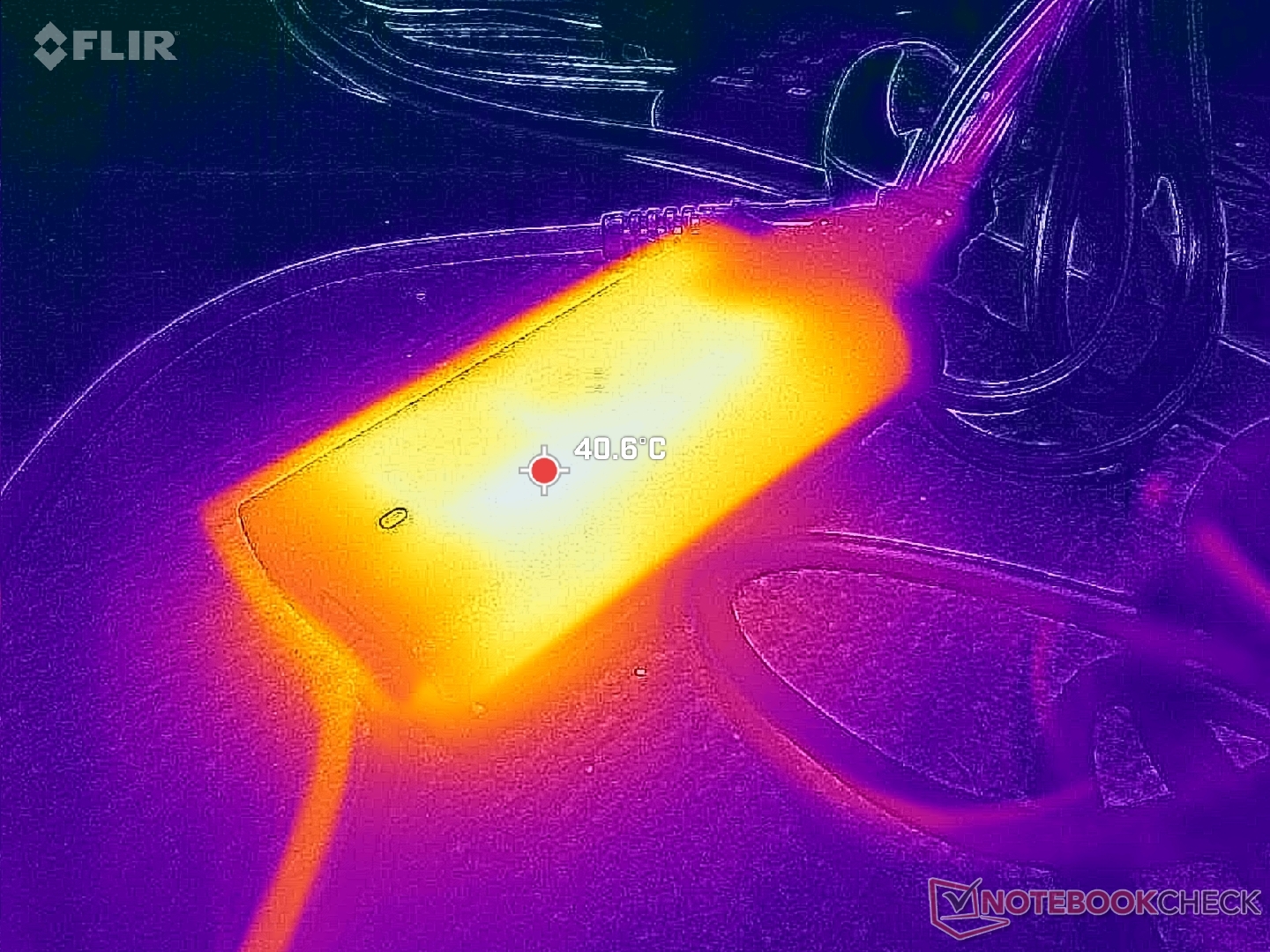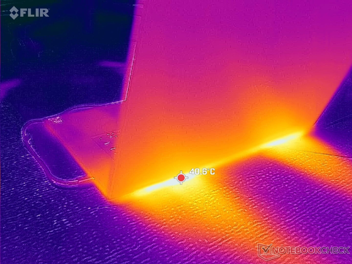 (±) La temperatura máxima en la parte superior es de 40.6 °C / 105 F, frente a la media de 36.9 °C / 98 F, que oscila entre 21 y 71 °C para la clase Multimedia.