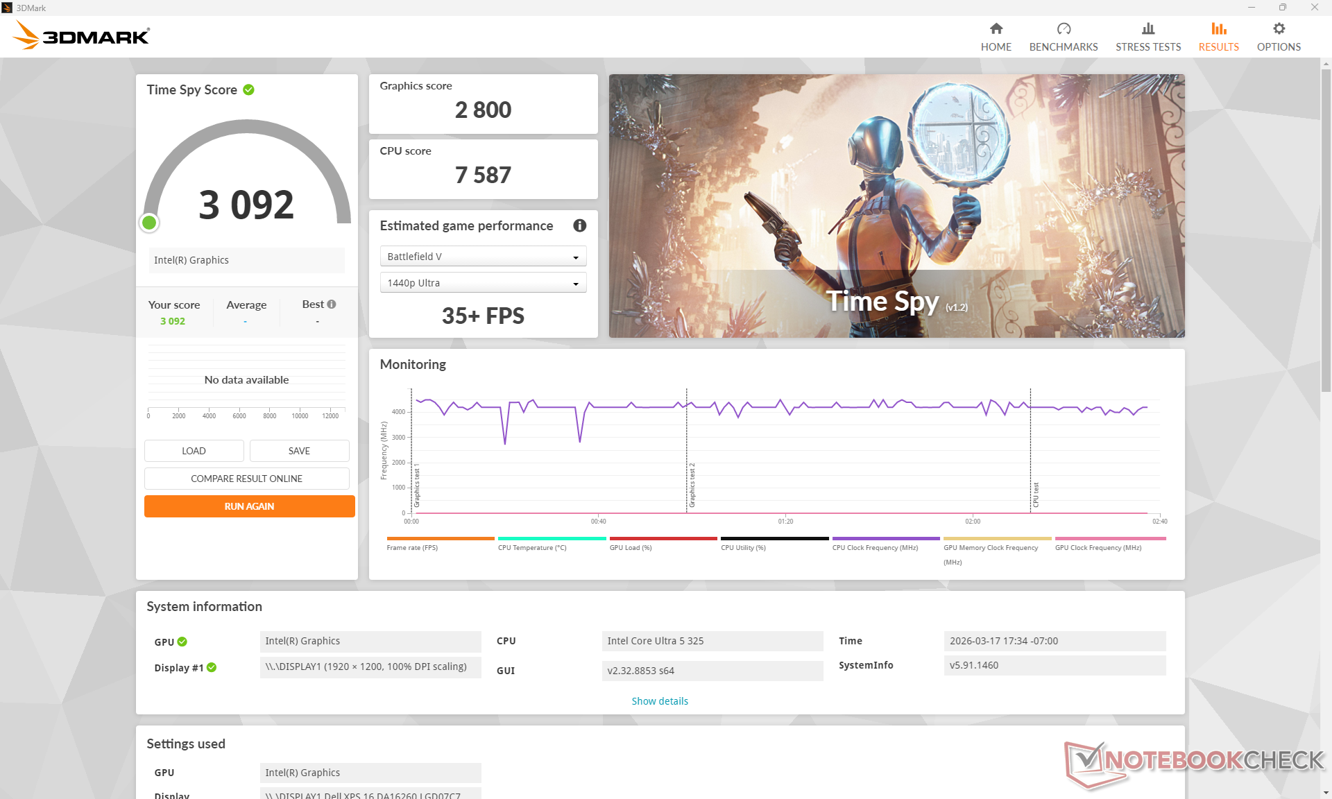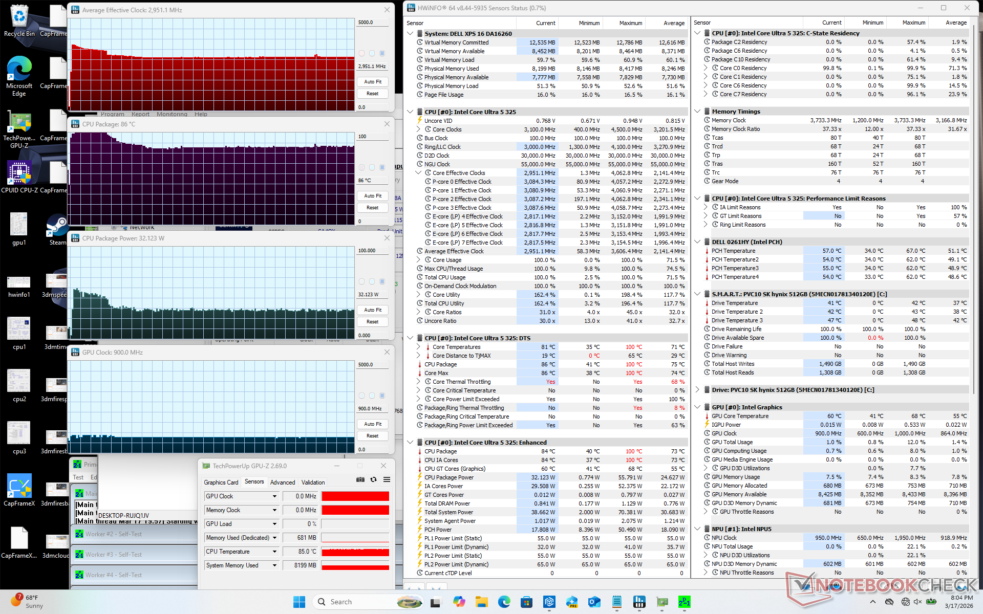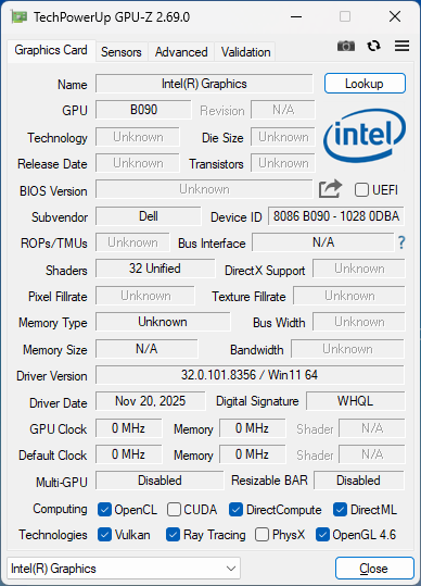 Una razón clave para el diseño más delgado, silencioso y compacto de este año puede atribuirse a un cambio importante: no más opciones de gráficos discretos. La ausencia de dGPU significa que el sistema puede salirse con la suya con placas de circuito impreso más pequeñas, una solución de refrigeración menor y un perfil más delgado para un modelo más ligero en general. Los usuarios sacrificarán el rendimiento gráfico, ya que la GPU integrada de Panther Lake -por muy eficiente que sea- no puede igualar la potencia bruta de una GeForce RTX 5070 en el Dell 16 Premium saliente. Las GPU externas pueden sortear esta limitación, pero los creadores de contenidos o los jugadores que exijan un mayor rendimiento gráfico sobre la marcha pueden encontrar mejor valor en el modelo 2025.