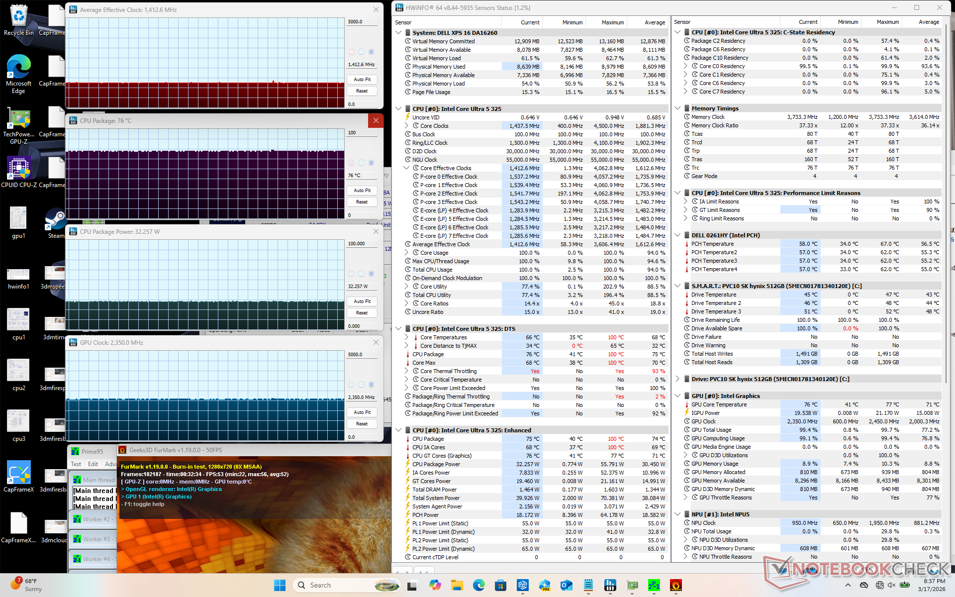 | Prime95 + FurMark Stress | 1.4 | 2350 | 76 |