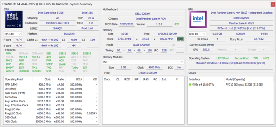 | Dell XPS 16 Core Ultra 5 325 Intel Core Ultra 5 325 ⎘ Intel Graphics 4 Xe3 Panther Lake iGPU ⎘ 16 GB Memoría, 512 GB SSD | Amazon: 1. $2,229.99 Dell XPS 16 9640 Laptop | In... 2. $1,389.98 Dell 16 Plus Touchscreen Lap... 3. $1,899.00 Dell XPS 16 9640 16.3" Touch... Precio de catálogo: 1600 USD | 1.7 kg | 15.4 mm | 16.00" 1920x1200 142 PPI IPS | |