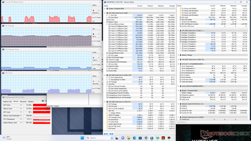 La CPU aumentaba a 1,8 GHz, 67 C y 15 W durante los primeros segundos después de iniciar el estrés Prime95 antes de caer y estabilizarse en sólo 400 MHz, 59 C y 7 W. Estos resultados son significativamente más bajos que en el Dell XPS 13 9315 que viene con exactamente la misma CPU y explica los resultados del benchmark más bajos de lo esperado en la sección de Rendimiento de CPU más arriba.