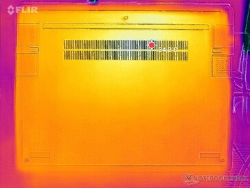 Las temperaturas superficiales no son más frías que en la versión Intel e incluso pueden ser más cálidas. Las temperaturas medias de nuestro sistema AMD serían unos grados C más cálidas tanto en la parte superior como en la inferior, pero nunca se pueden descartar por completo las diferencias en la temperatura de fondo. Alternativas con CPUs más lentas como elHP Spectre x360 13.5 van más frescas.