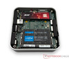 Geekom siempre vende el A8 preconfigurado, lo que significa que no tiene necesariamente que desmontar el dispositivo. No obstante, la RAM y la SSD pueden desmontarse y sustituirse en caso necesario. Para desmontar el dispositivo, primero tiene que retirar las patas de goma pegadas en la parte inferior. Debajo se encuentran los cuatro tornillos de sujeción para retirar la placa base. Aquí debe tener cuidado, ya que el cable de la antena WLAN no tiene mucho margen de maniobra y puede dañarse. Hay otra placa metálica debajo de la placa base, que también es necesario retirar si desea acceder a la SSD o a la RAM. El módulo WLAN también puede sustituirse y no está instalado de forma permanente. El ventilador de la CPU se encuentra en el otro lado de la placa y no se puede acceder a él sin desmontarlo completamente. Con un poco de destreza, la unidad completa (placa con unidad de refrigeración) puede extraerse de la carcasa.