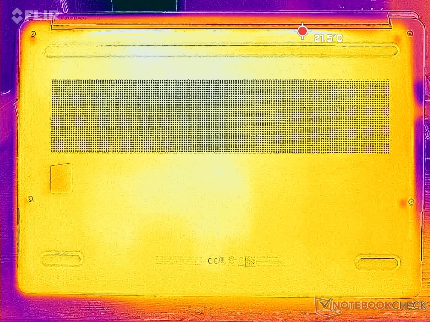 Las temperaturas superficiales son más cálidas en el centro, donde los puntos calientes pueden alcanzar los 36 C cuando se ejecutan cargas exigentes. Esto es notablemente más frío que en el saliente EliteBook 1040 G10 en casi 10 C en condiciones similares a pesar de sus grandes diferencias de rendimiento.