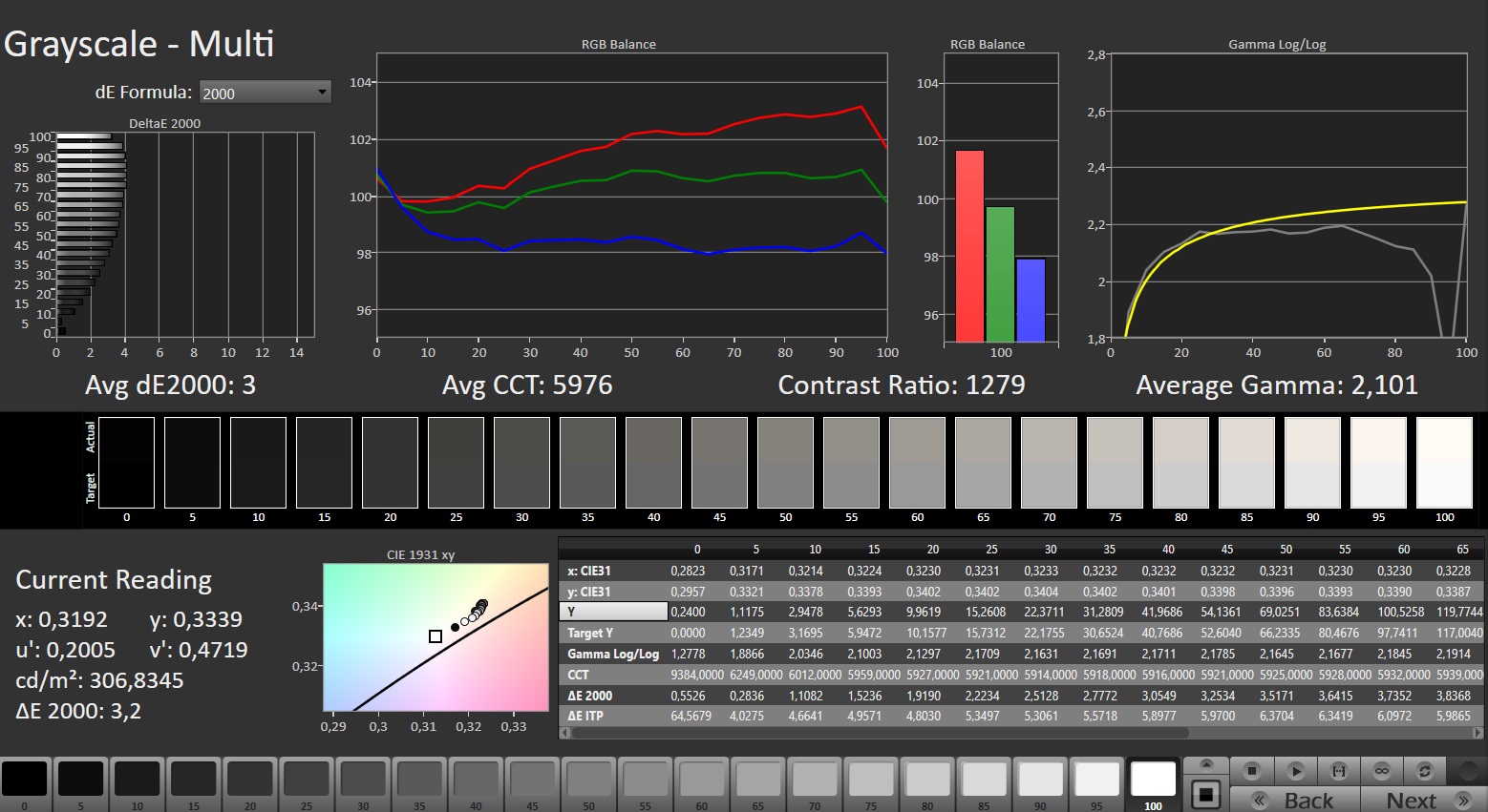 ΔE Greyscale Calman: 3 | ∀{0.09-98 Ø5}