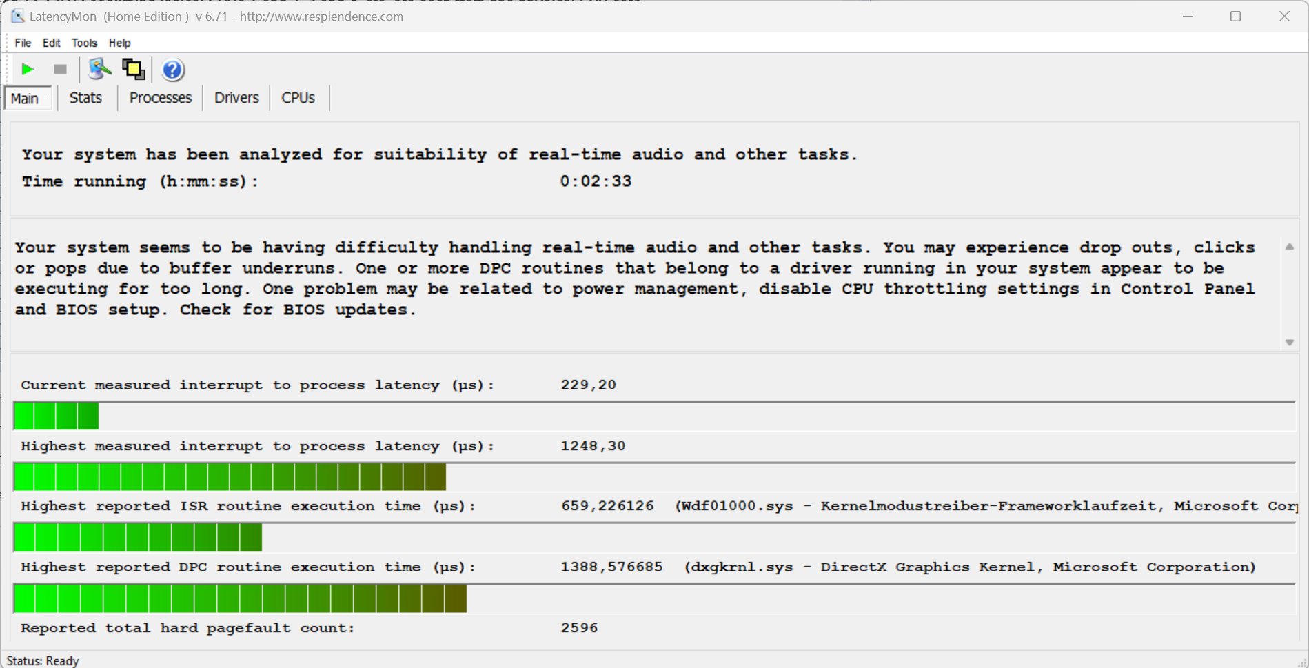 Nuestra prueba de estrés consiste en ejecutar Prime95 y FurMark durante un periodo prolongado y representa un escenario extremo diseñado para evaluar la estabilidad del sistema a plena carga. Las velocidades de reloj de la CPU cayeron en picado con bastante rapidez desde los 3,4 GHz (P) y 2,9 GHz (E) iniciales hasta alrededor de 1,8 a 1,9 GHz (tanto P como E), y luego se mantuvieron en este nivel. La GPU funcionó a velocidades entre 1,9 y 2 GHz.