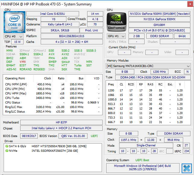 | HP ProBook 470 G5 i5-8250U, GeForce 930MX | HP ProBook 470 G4 i7-7500U, GeForce 930MX | Lenovo V320-17IKB 81AH0002GE i5-7200U, HD Graphics 620 | HP 17-bs103ng i5-8250U, Radeon 530 | Acer Aspire E5-774G-78NA 6500U, GeForce 940MX | |