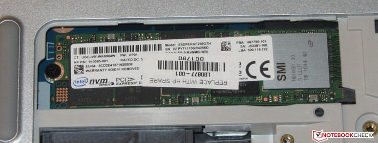 Afortunadamente, el Probook ofrece dos grandes aletas de mantenimiento en la parte inferior, la más pequeña de las cuales solo se puede abrir una vez que se haya eliminado la mayor de las dos. Ubicadas detrás de las aletas están las ranuras de memoria, el módem Wi-Fi, la batería CMOS, el SSD y la ranura SATA. Desafortunadamente, el ventilador y la batería permanecen inaccesibles y requieren un desmontaje completo de la carcasa.