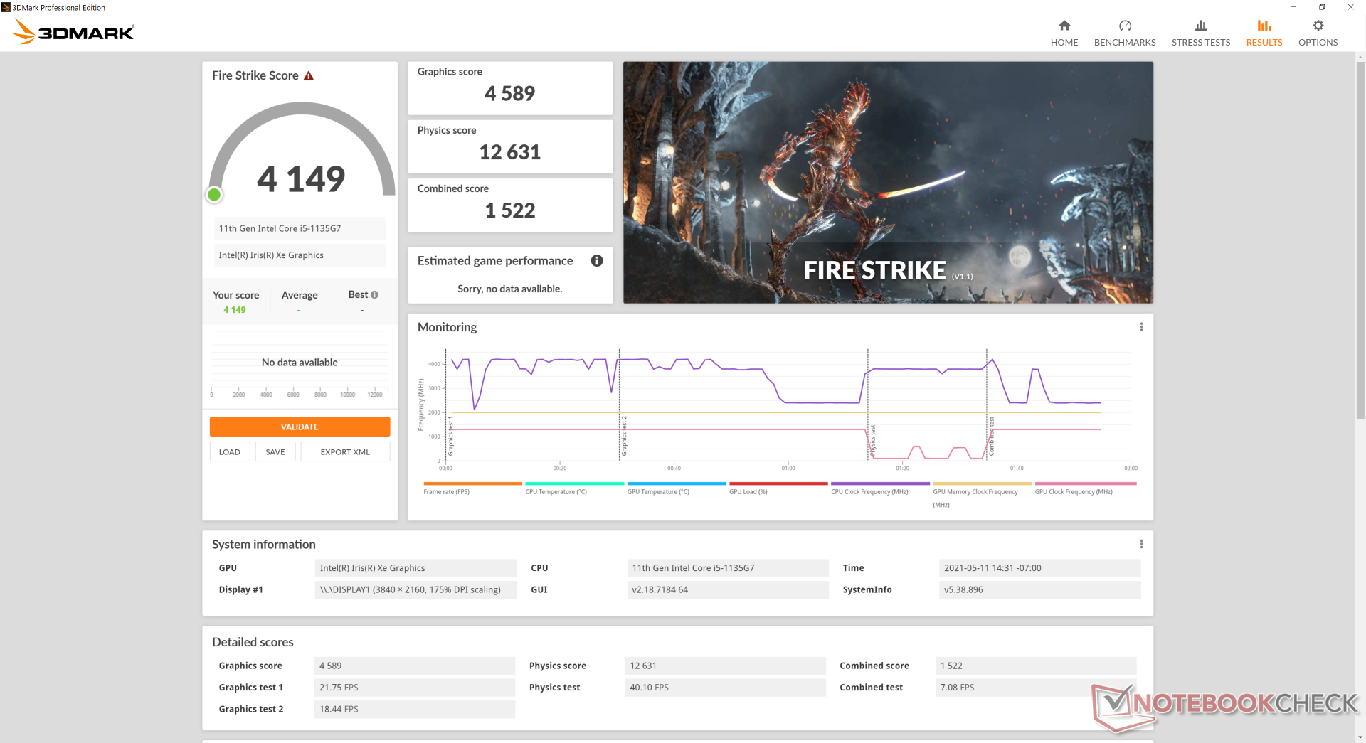 Funcionar con batería no afectará mucho al rendimiento. Una ejecución de 3DMark 11 en batería devolvería puntuaciones de Física y Gráfica de 10393 y 5996 puntos, respectivamente, comparado con los 9883 y 6120 puntos en batería.