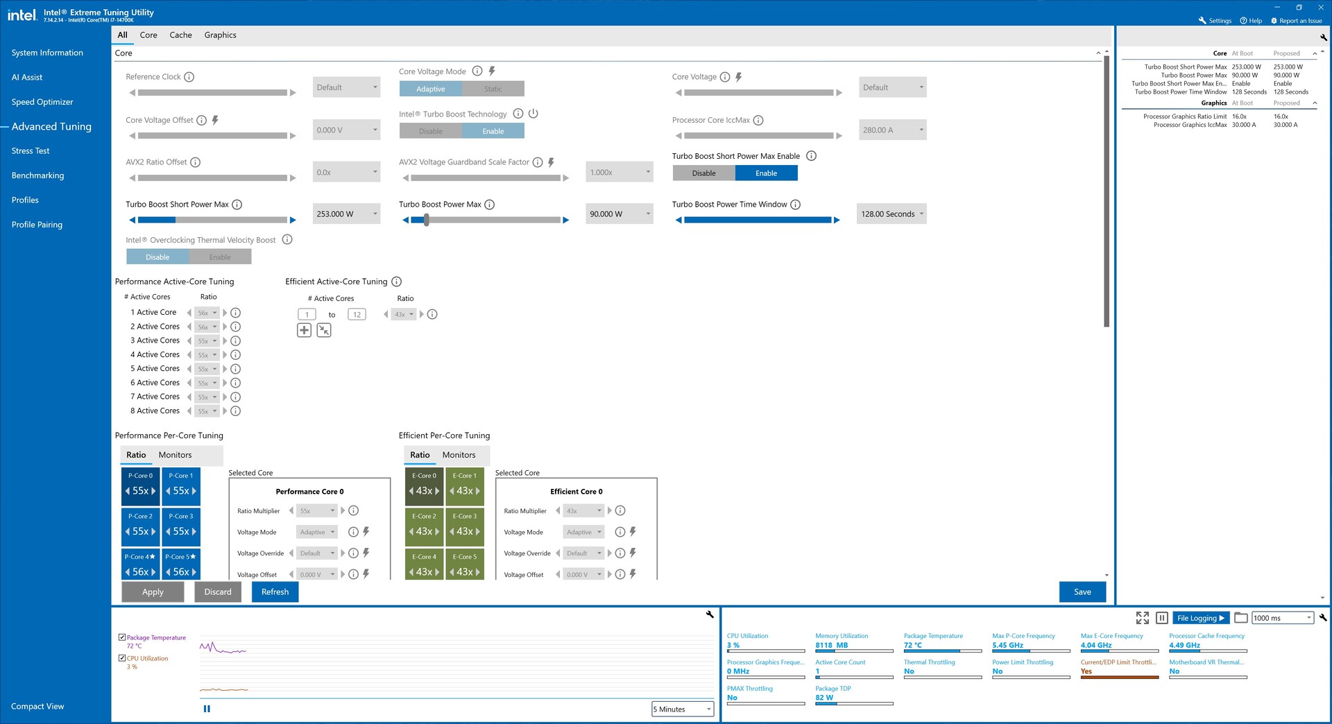 Utilizamos el perfil de energía "HP Optimized" para todas las pruebas de rendimiento con el HP Z2 Mini G9. La propia HP no ofrece ninguna opción para personalizar el rendimiento del sistema. Sin embargo, los límites de potencia del procesador pueden ajustarse mediante la herramienta XTU (Intel Extreme Tuning Utility). No recomendamos aumentar los valores. Esto se debe a que el consumo de energía es demasiado elevado y la fuente de alimentación y la unidad de refrigeración no están diseñadas para ello.