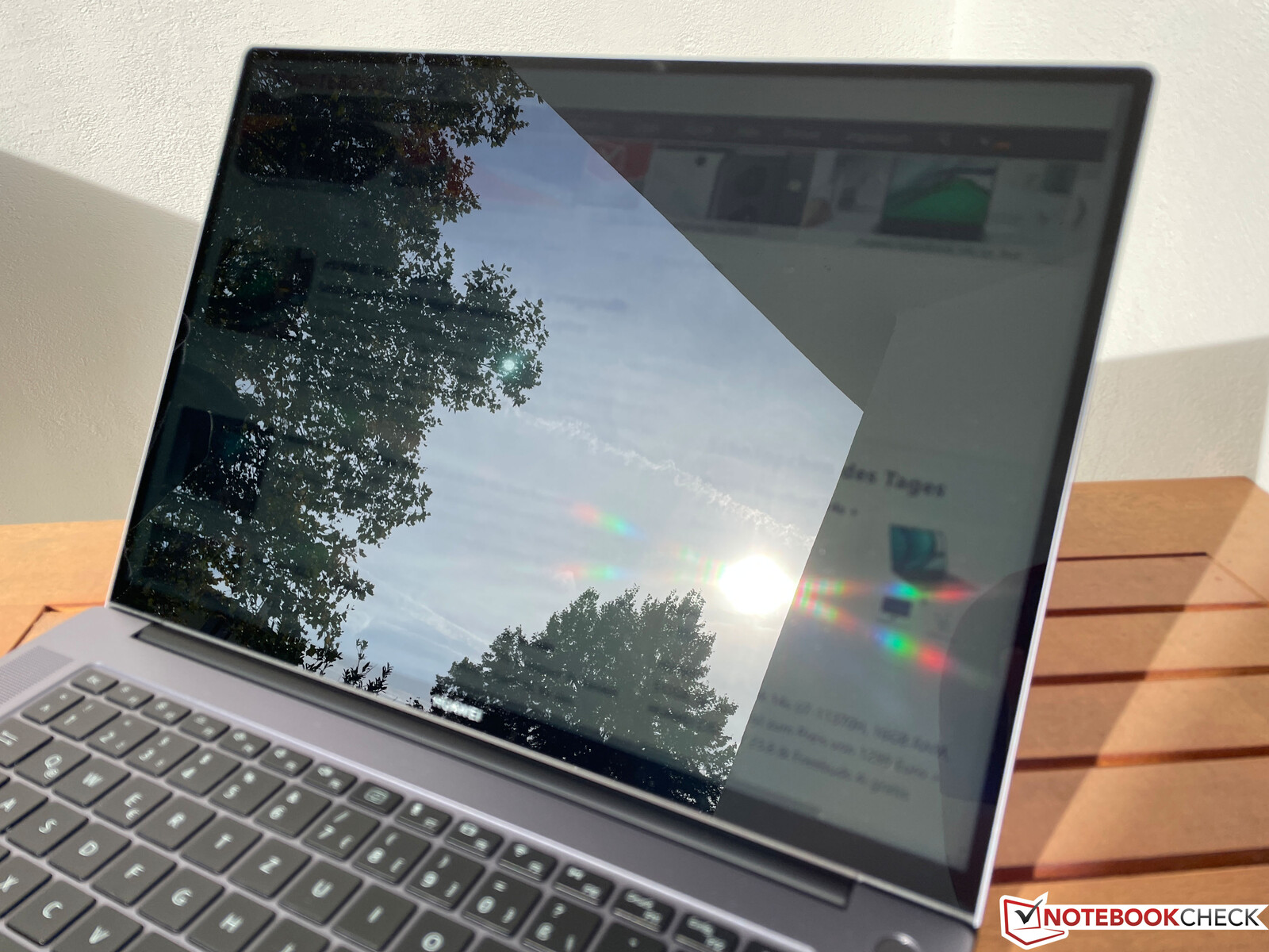 Al igual que otros modelos de Huawei, el nuevo MateBook 16 está equipado con un panel que tiene una relación de pantalla 3:2. El panel de 16 pulgadas tiene 2520 x 1680 píxeles, lo que resulta en una densidad de píxeles de 189 DPI. La pantalla reflectante da una gran impresión, subjetivamente. El contenido de la pantalla se muestra muy claramente y los colores son fuertes. La estabilidad del ángulo de visión del panel BOE IPS es muy buena
