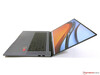 Tanto la unidad base como la cubierta de la pantalla son muy sólidas y resistentes. La unidad base sólo cede a la presión en el centro, por encima del teclado. Esto no debería afectar al uso diario de ninguna manera. Las bisagras están bien ajustadas pero no pueden compensar el hecho de que la pantalla es bastante grande y profunda debido al ratio de pantalla 3:2. El portátil es bastante fácil de abrir con una mano, pero la pantalla se tambalea ligeramente cuando se ajusta el ángulo de apertura (máximo 145 grados).