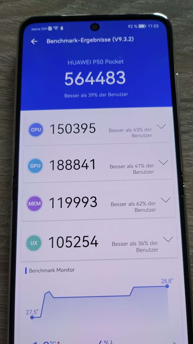 El P50 Pocket nos dio algunas sorpresas en nuestra prueba. En el lado positivo, podemos mencionar la calidad de la cámara en la parte trasera. En comparación con nuestras fotos de prueba tomadas con el Apple iPhone 13 Prola calidad fotográfica del P50 Pocket es un verdadero plus. Sorprendentemente, Huawei también ha conseguido meter una potente batería de 4000 mAh en la delgada carcasa del Pocket, pero la duración de la batería es bastante decepcionante debido a los problemas térmicos.