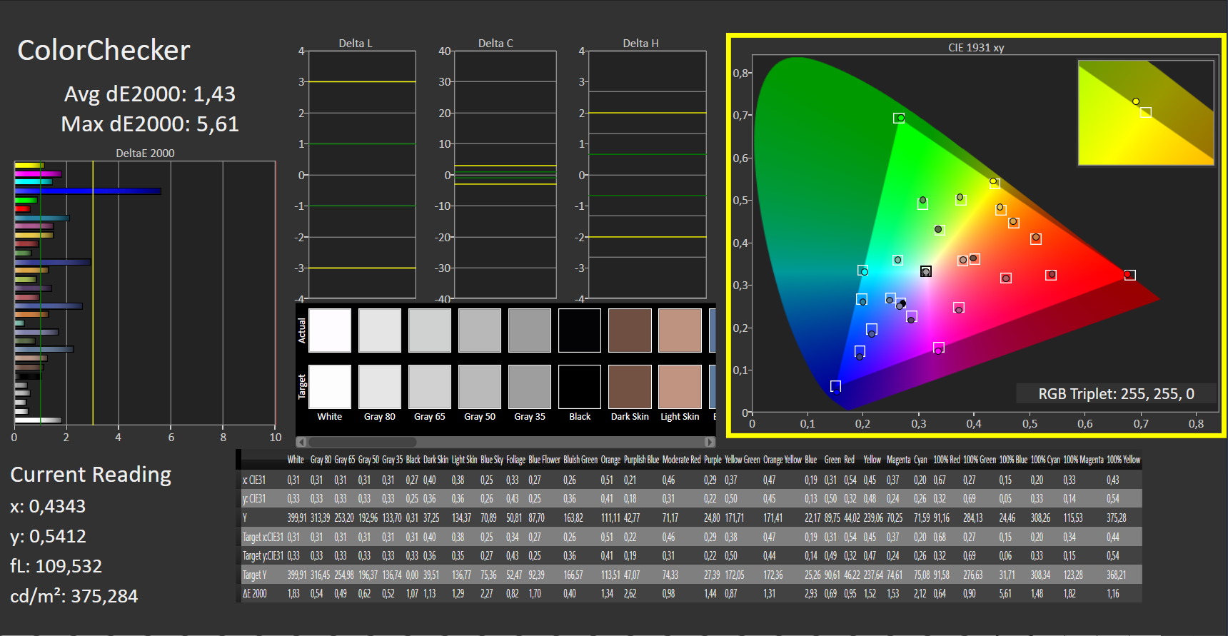 ΔE ColorChecker Calman: 3.52 | ∀{0.5-29.43 Ø4.78}