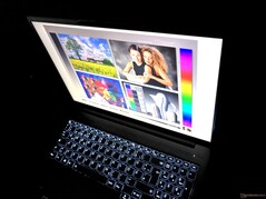 Nuestro dispositivo de prueba viene con la variante de 120 Hz - esto se nota en el uso diario cuando se desplaza o arrastra las ventanas por el escritorio debido a la suavidad adicional, y también se beneficia de la tasa de refresco duplicada en los juegos. Como corresponde, la pantalla tiene tiempos de respuesta rápidos. La pantalla del portátil Lenovo también convence en otros aspectos: El valor de brillo anunciado se supera en unos 25 cd/m², ya que la pantalla emite unos 375 cd/m² de brillo.