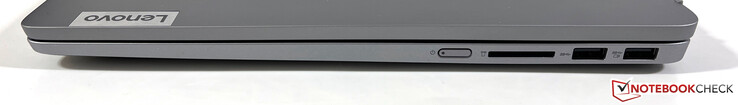 En cuanto a puertos, los requisitos básicos están cubiertos por USB-A y USB-C (que también pueden usarse para salida de vídeo y carga), así como una salida HDMI. Además, en el lado derecho del dispositivo, Lenovo ha instalado un lector de tarjetas completamente funcional que rinde bien gracias a tasas de transferencia de más de 80 MB/s cuando se empareja con nuestra tarjeta de referencia, la Angelbird AV Pro V60. El módulo Wi-Fi soporta Wi-Fi 6 y 160 MHz (1x1), lo que limita la tasa de transferencia máxima a casi 1 GBit/s. Los resultados son muy estables y más que suficientes para el uso diario, además, la competencia no es más rápida. La cámara 1080p, con obturador mecánico, hace su trabajo, pero incluso en condiciones de luz razonables, no consigue producir imágenes especialmente buenas.