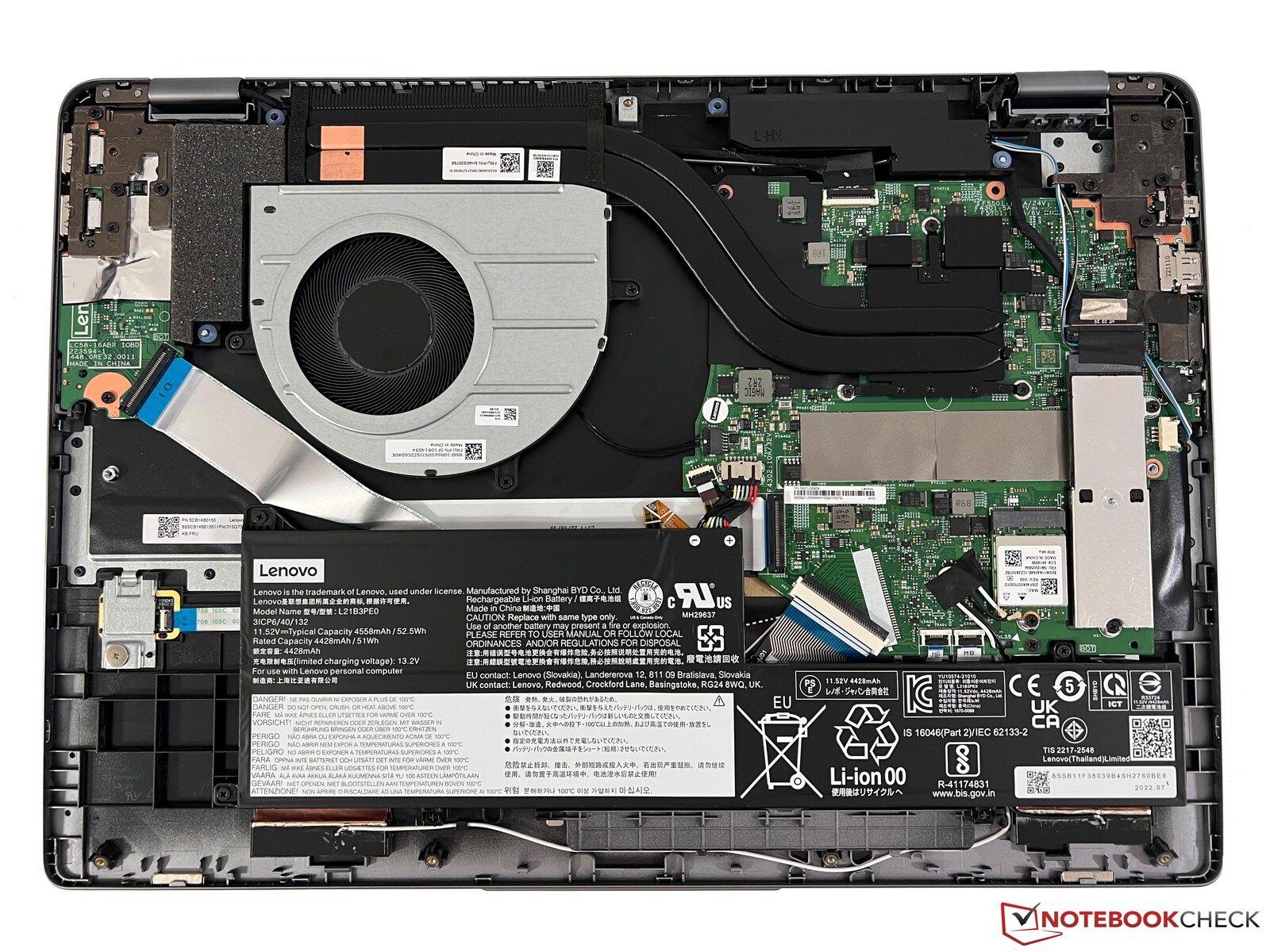 Lenovo sólo usa una batería de 52.5 Wh, pero nuestras pruebas muestran que la duración de la batería es muy buena, especialmente a un brillo adaptativo de 150 cd/m² (que representa el 80% del brillo máximo del dispositivo de pruebas). En las pruebas de vídeo y Wi-Fi, medimos 13 horas y algo menos de 10 horas (o ~7 horas a pleno brillo), respectivamente. En general, los resultados son muy buenos. Con el dispositivo encendido, un ciclo de carga completo dura casi 95 minutos.