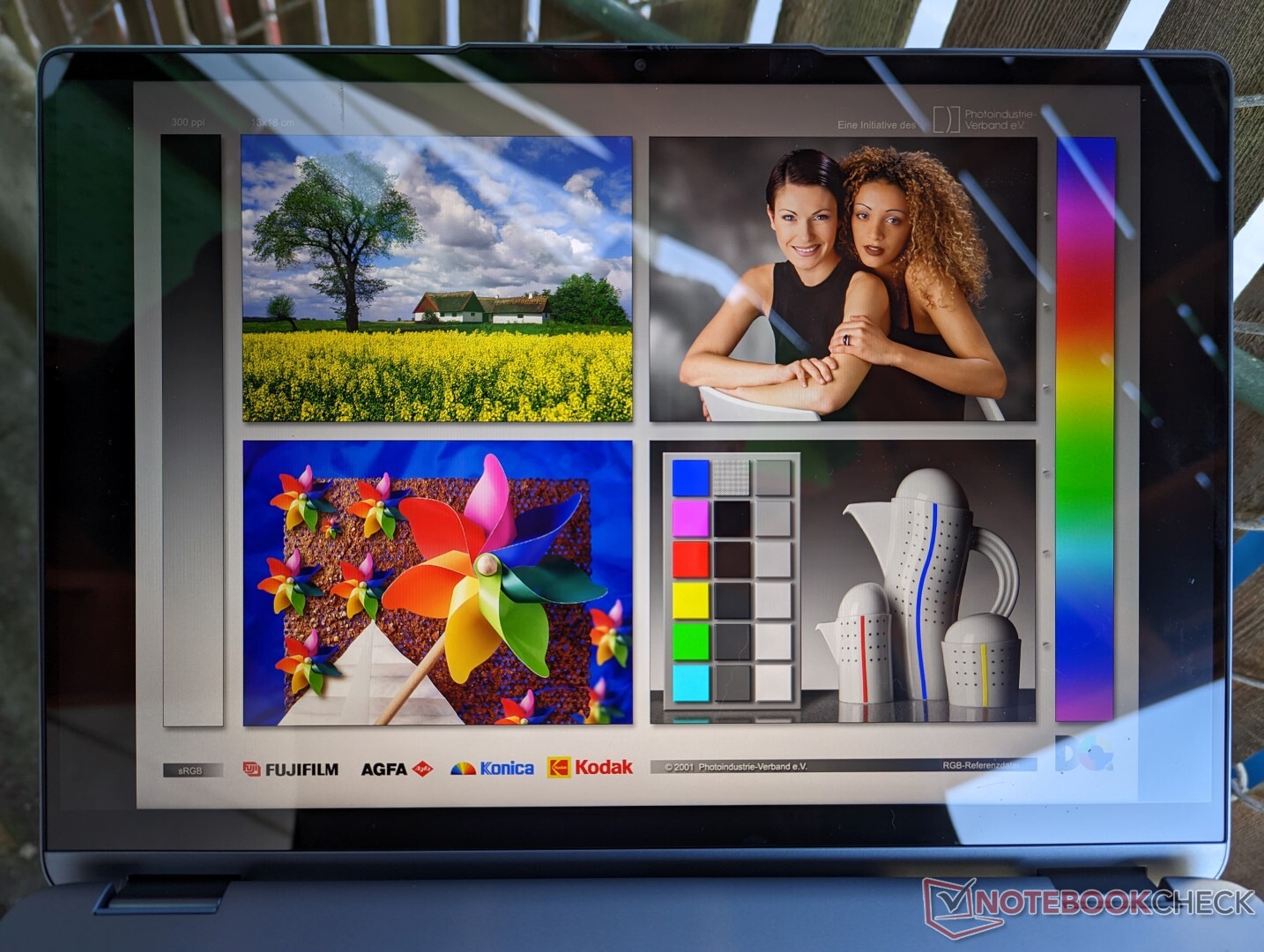 La pantalla es posiblemente el mayor factor diferenciador entre el IdeaPad Flex 7i y el Flex 5i. Mientras que el Flex 5i utiliza una pantalla táctil IPS de 1200p con sólo un 60 por ciento de cobertura sRGB, nuestro Flex 7i utiliza un panel de mayor resolución 2240 x 1400p con casi un 100 por ciento de cobertura sRGB. Las mejoras son lo suficientemente significativas como para que un usuario pueda notar la diferencia a simple vista