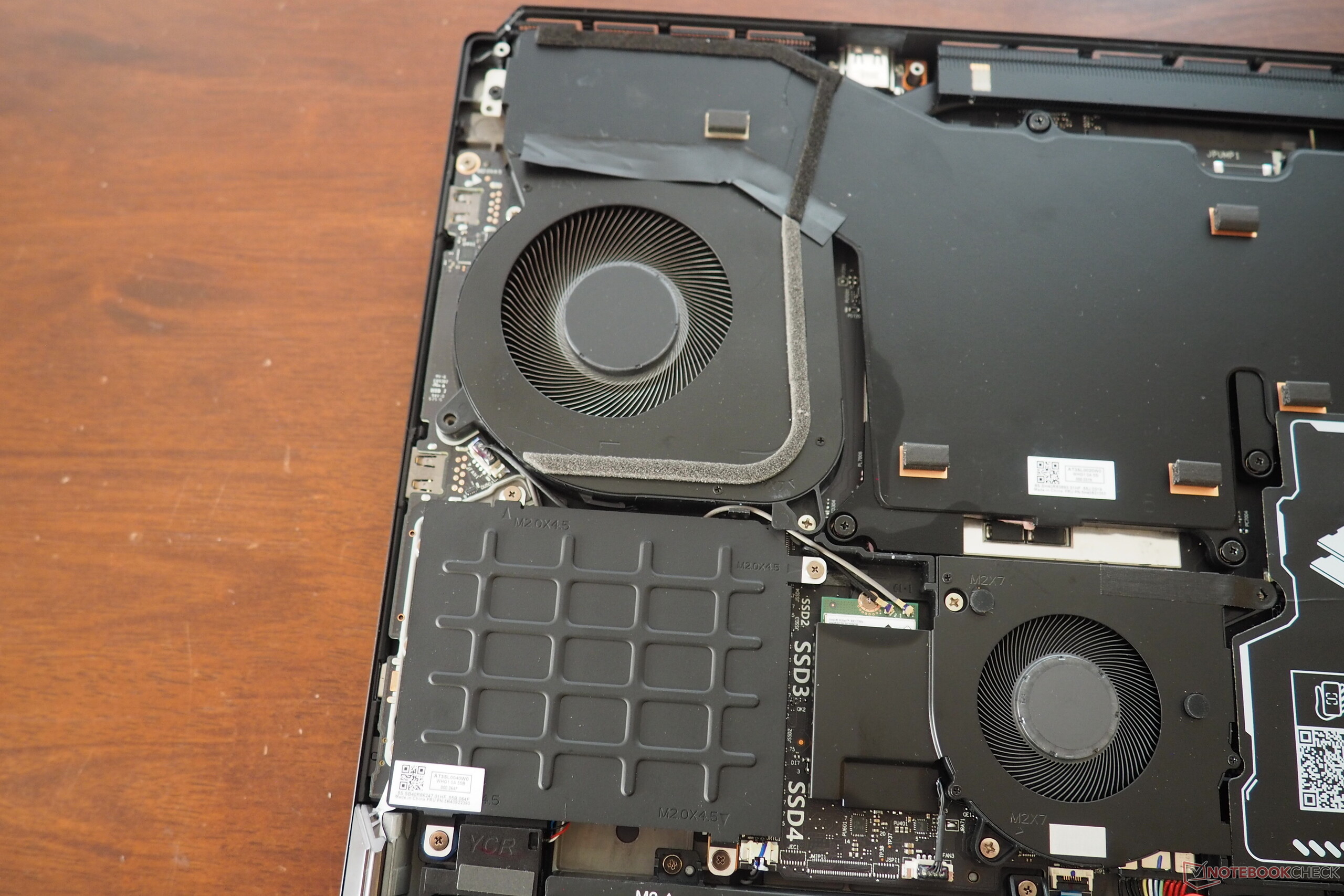 Bajo el capó, las cosas son bastante fastuosas si tenemos en cuenta los cuatro ventiladores, los cuatro bancos de RAM y las cuatro ranuras para SSD. La calidad del sonido también está a la altura del enorme precio de venta.