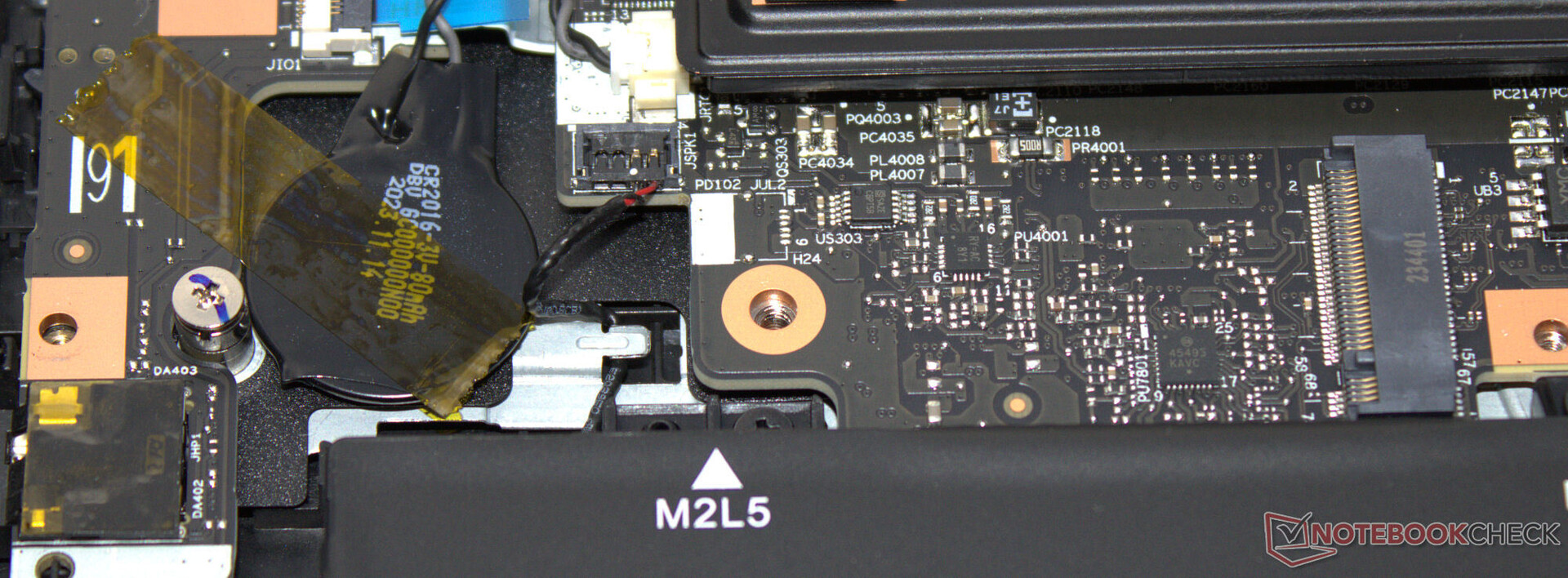 Dos puertos USB-C (1x Thunderbolt 4, 1x USB 3.2 Gen 2) facilitan la integración del portátil en una configuración de trabajo existente y abren opciones de expansión (por ejemplo, GPU externa, bases). Ambos puertos son capaces de emitir una señal DisplayPort, y uno de ellos incluso soporta Power Delivery. La duración de la batería es bastante decente.