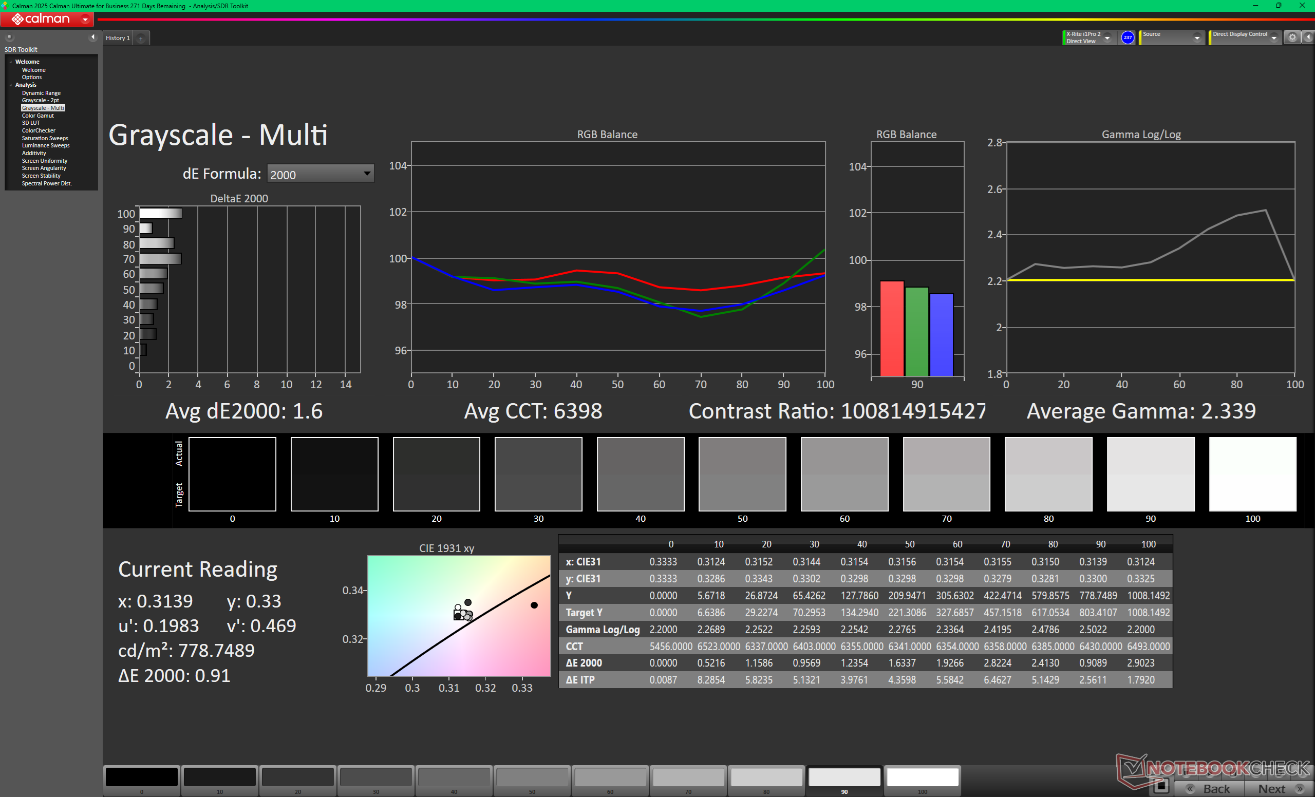 ΔE Greyscale Calman: 1.6 | ∀{0.09-98 Ø4.98}